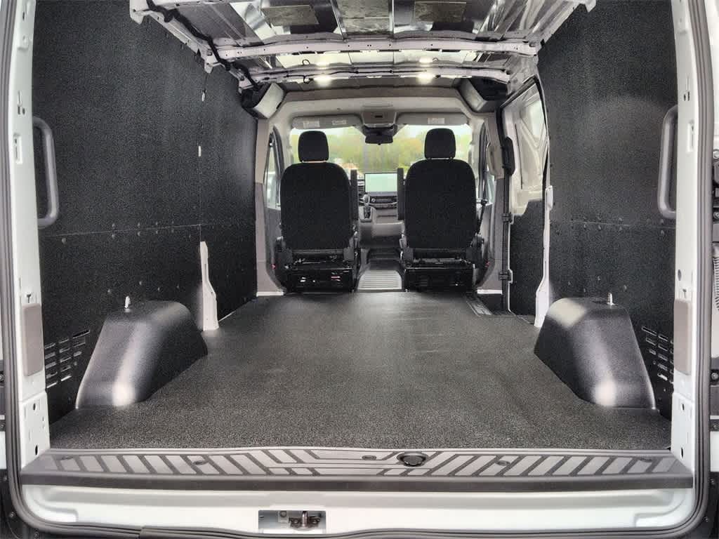 Transit-150 Base is nicely equipped with Interior Upgrade Package (Front & Rear Vinyl Floor Covering and Illuminated Sun Visors), Order Code 101A (3.73 Limited-Slip Axle Ratio), 110V/400W Power Outlet, 4 Speakers, 4-Wheel Disc Brakes, ABS brakes, Air Conditioning, AM/FM radio, AM/FM Stereo, Auto High-beam Headlights, Brake assist, Cloth Front Bucket Seats, D-Pillar Assist Handles, Dark Palazzo Gray Cloth Bucket Seats w/Armrests, Dark Palazzo Gray Vinyl Bucket Seats, Delay-off headlights, Driver door bin, Drivers Seat Mounted Armrest, Dual AGM Batteries (70 Amp-hr Each), Dual front impact airbags, Dual front side impact airbags, Electronic Air Temperature Control, Electronic Stability Control, Exterior Parking Camera Rear, Fixed Rear Cargo Door Glass, Front anti-roll bar, Front Bucket Seats, Front License Plate Bracket, Front reading lights, Front wheel independent suspension, Fully automatic headlights, High Resolution Digital Camera, Illuminated entry, Internet access capable: FordPass Connect 4G, Low tire pressure warning, Occupant sensing airbag, Overhead airbag, Panic alarm, Passenger cancellable airbag, Passenger door bin, Passenger-Side B-Pillar Assist Handle, Power door mirrors, Power steering, Power windows, Radio: AM/FM Stereo w/SYNC 4, Rear-Window Defroster, Rearview Mirror, Remote keyless entry, Reverse Sensing System, Short-Arm Manual-Folding Power Adjust Mirrors, Speed control, Steering wheel mounted audio controls, Tachometer, Telescoping steering wheel, Tilt steering wheel, Traction control, Variably intermittent wipers, Vinyl Front Bucket Seats, and Wheels: 16 Silver Steel w/Silver Hubcaps.
