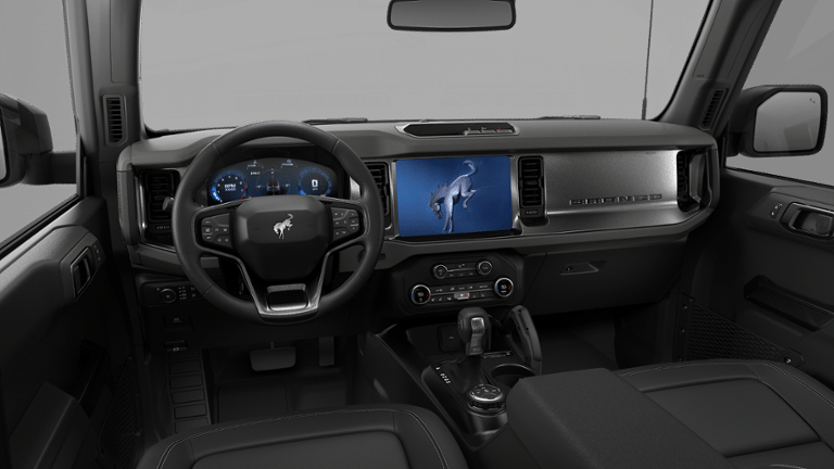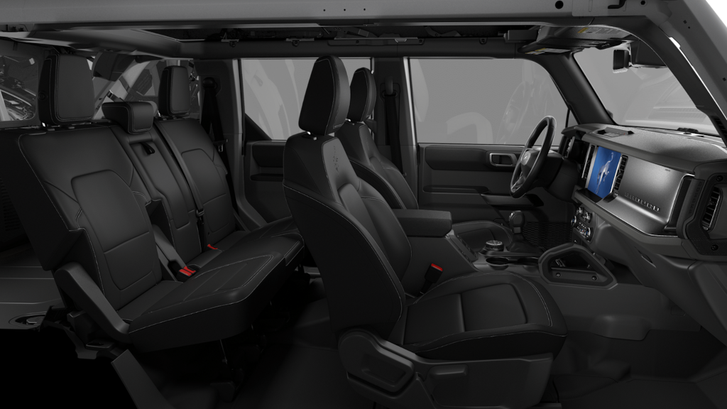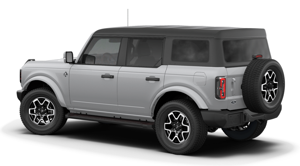 Bronco Outer Banks Advanced is nicely equipped with Equipment Group 314A Lux Package (18" Bright Machined Aluminum Wheels, 3.73 Axle Ratio, 360-Degree Camera, Adaptive Cruise Control, Evasive Steering Assist, Front Parking Sensors, Heated Leather-Trimmed/Vinyl Bucket Seats, Information on Demand Panel, and Sideview Mirrors), Ford Connectivity Package (1-Year Included), 4-Wheel Disc Brakes, 7 Speakers, ABS brakes, Air Conditioning, Alloy wheels, AM/FM radio: SiriusXM with 360L, AM/FM Stereo, Auto High-beam Headlights, Auto-dimming Rear-View mirror, Automatic temperature control, Brake assist, Carbonized Gray Molded-in-Color Hard Top, Compass, Connected Navigation, Delay-off headlights, Driver door bin, Driver vanity mirror, Dual front impact airbags, Dual front side impact airbags, Electronic Stability Control, Emergency communication system: 911 Assist, Exterior Parking Camera Rear, Front anti-roll bar, Front Bucket Seats, Front Center Armrest, Front dual zone A/C, Front fog lights, Front reading lights, Front Row Top Panels and Door Storage Bags, Front wheel independent suspension, Fully automatic headlights, Hard Top Sound Deadening Headliner, Heated door mirrors, Heated front seats, Heated steering wheel, Illuminated entry, Integrated roll-over protection, Leather Shift Knob, Low tire pressure warning, Navigation system: Connected Navigation, Occupant sensing airbag, Outside temperature display, Overhead airbag, Overhead console, Panic alarm, Passenger door bin, Passenger vanity mirror, Power door mirrors, Power driver seat, Power passenger seat, Power steering, Power windows, Radio data system, Rear seat center armrest, Rear-Window Defroster and Washer, Remote keyless entry, Security system, SiriusXM with 360L, SiriusXM with 360L (3-Year Plan), Speed control, Split folding rear seat, Steering wheel mounted audio controls, SYNC 4, Tachometer, Telescoping steering wheel, Tilt steering wheel, Traction control, Trip computer, Variably intermittent wipers, and Voltmeter.