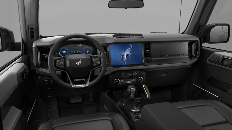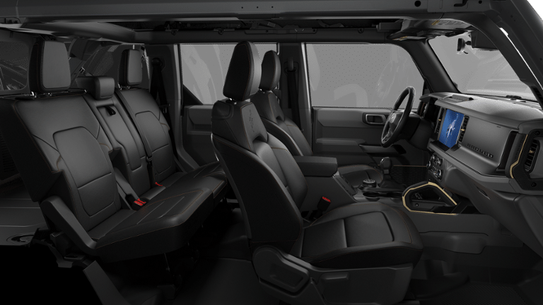 EQUIPMENT GROUP 334A LUX PACKAGE Rear Parking Sensors, Pro Power Onboard - 400W, Back side of center floor console, Dr & Pass Illuminated Sliding Visor Vanity Mirrors, Evasive Steering Assist, Heated Steering Wheel, Information on Demand Panel, Dual-Zone Electronic Automatic Temperature Control, air conditioning, Ford Co-Pilot360, Auto High-Beam Headlamps, Pre-Collision Assist w/Automatic Emergency Braking, pedestrian detection, forward collision warning and dynamic brake support, Blind Spot Information System (BLIS), Cross-Traffic Alert, Rear View Camera, backup assist grid lines, Lane-Keeping System, Lane-Keeping Alert, Lane-Keeping Aid and Driver Alert, Ambient Footwell Lighting, 2-Door Intelligent Access w/Lock/Unlock, Intelligent Access will also lock/unlock the swing gate, Dual Smart, SASQUATCH PACKAGE Wheels: 17 Matte Black Alloy, High Clearance Suspension, 4.7 Final Drive Ratio, electronic-locking front and rear axle, Front Stabilizer Disconnect, Tires: LT315/70R17 Rugged-Terrain, Position-Sensitive Bilstein Shock Absorbers, ENGINE: 2.7L ECOBOOST V6 GVWR: 6,180 lbs, PAINTED HARD TOP Hard Top Sound Deadening Headliner, Rear-Window Defroster & Washer, TRANSMISSION: 10-SPEED AUTOMATIC trail control, trail turn assist and trail one-pedal driving, 4.46 Axle Ratio. Privacy Glass, Steering Wheel Controls.
