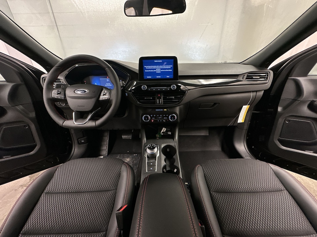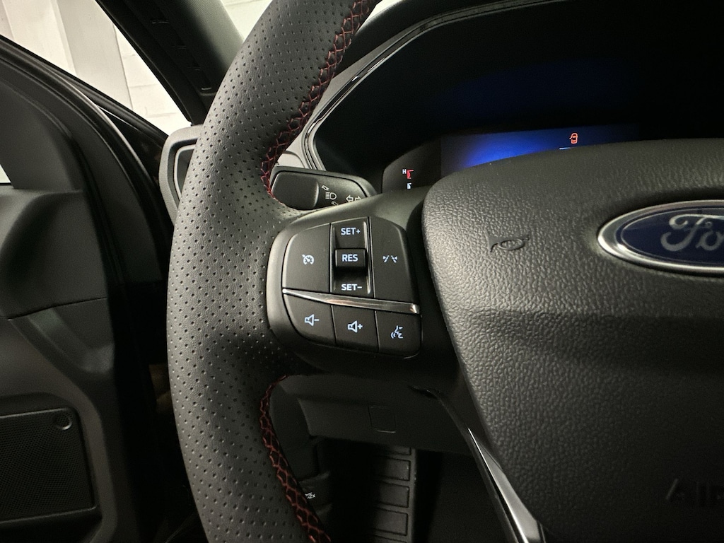 All Wheel Drive, Back-Up Camera, Satellite Radio, iPod/MP3 Input, Onboard Communications System, Aluminum Wheels, Dual Zone A/C, Brake Actuated Limited Slip Differential, WiFi Hotspot, Smart Device Integration, Cross-Traffic Alert, Apple CarPlay®, Blind Spot Monitor, Lane Keeping Assist. Ford ST-Line with Agate Black exterior and Ebony w/Red Stitching interior features a 3 Cylinder Engine with 180 HP at 6000 RPM*.