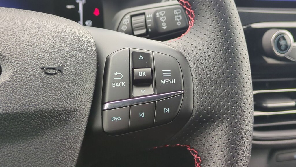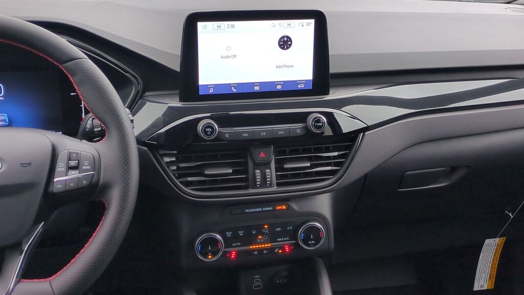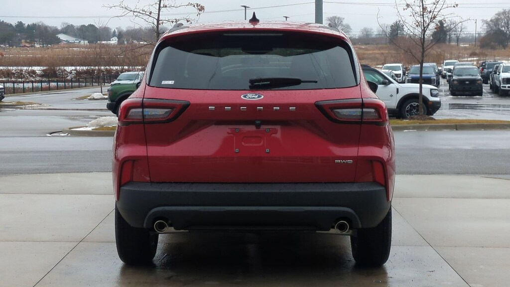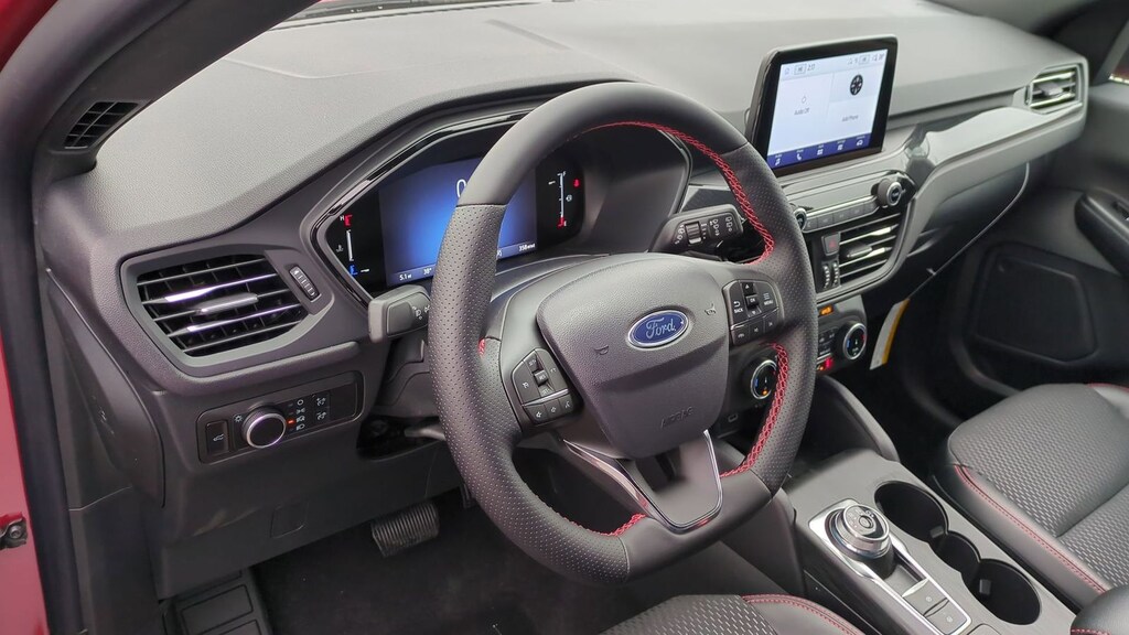 2026 Ford Escape ST-Line Is nicely equipped with Cold Weather Package (Heated Front Row Seats, Heated Sideview Mirrors, Heated Steering Wheel, and Remote Starter System), Equipment Group 300A (3.81 Axle Ratio, 4-Way Manual Front Passenger Seat, 8-Way Power Driver Seat, Ford App, Partial Vinyl/Cloth Front Sport Contour Bucket Seats with Red Stitching, Radio: AM/FM Stereo with SiriusXM 360L, SYNC 4, and Wheels: 18" Rock Metallic Painted Aluminum), AWD, 4-Wheel Disc Brakes, 6 Speakers, ABS brakes, Air Conditioning, Alloy wheels, AM/FM radio: SiriusXM 360L, Auto High-beam Headlights, Automatic temperature control, Brake assist, Bumpers: body-color, Compass, Delay-off headlights, Driver door bin, Driver vanity mirror, Dual front impact airbags, Dual front side impact airbags, Electronic Stability Control, Emergency communication system: SYNC 4 911 Assist, First Aid Kit, Four wheel independent suspension, Front anti-roll bar, Front Bucket Seats, Front Center Armrest, Front dual zone A/C, Front reading lights, Fully automatic headlights, Heated steering wheel, Illuminated entry, Knee airbag, Low tire pressure warning, Occupant sensing airbag, Outside temperature display, Overhead airbag, Overhead console, Panic alarm, Passenger door bin, Passenger vanity mirror, Power door mirrors, Power driver seat, Power Liftgate, Power steering, Power windows, Radio data system, Rear anti-roll bar, Rear reading lights, Rear seat center armrest, Rear window defroster, Rear window wiper, Remote keyless entry, Road Side Assistance Kit, Speed control, Speed-sensing steering, Speed-Sensitive Wipers, Split folding rear seat, Spoiler, Sport steering wheel, Steering wheel mounted audio controls, Tachometer, Telescoping steering wheel, Tilt steering wheel, Traction control, Trip computer, and Variably intermittent wipers. Factory MSRP: $36,215 Dealer Discount of $2,468 off MSRP