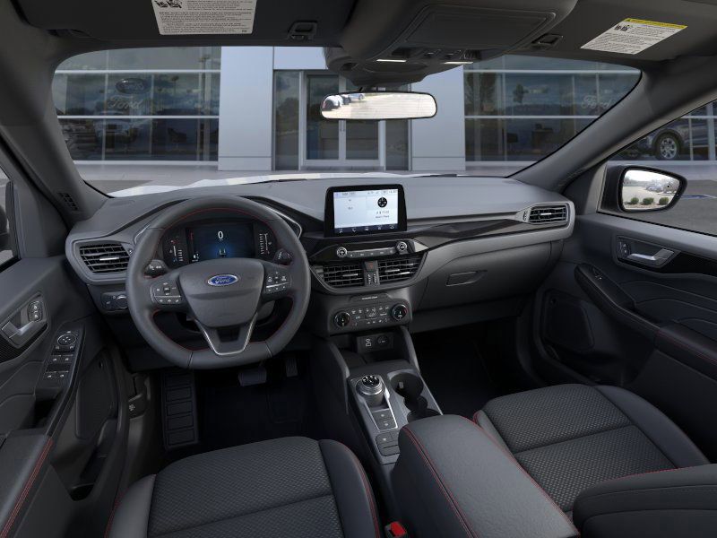 2026 Ford Escape ST-Line Is nicely equipped with Cold Weather Package (Heated Front Row Seats, Heated Sideview Mirrors, Heated Steering Wheel, and Remote Starter System), Equipment Group 300A (3.81 Axle Ratio, 4-Way Manual Front Passenger Seat, 8-Way Power Driver Seat, Ford App, Partial Vinyl/Cloth Front Sport Contour Bucket Seats with Red Stitching, Radio: AM/FM Stereo with SiriusXM 360L, SYNC 4, and Wheels: 18" Rock Metallic Painted Aluminum), AWD, 4-Wheel Disc Brakes, 6 Speakers, ABS brakes, Air Conditioning, Alloy wheels, AM/FM radio: SiriusXM 360L, Auto High-beam Headlights, Automatic temperature control, Black Roof-Rack Side Rails, Brake assist, Bumpers: body-color, Compass, Delay-off headlights, Driver door bin, Driver vanity mirror, Dual front impact airbags, Dual front side impact airbags, Electronic Stability Control, Emergency communication system: SYNC 4 911 Assist, First Aid Kit, Four wheel independent suspension, Front anti-roll bar, Front Bucket Seats, Front Center Armrest, Front dual zone A/C, Front reading lights, Fully automatic headlights, Heated steering wheel, Illuminated entry, Knee airbag, Low tire pressure warning, Occupant sensing airbag, Outside temperature display, Overhead airbag, Overhead console, Panic alarm, Panoramic Vista Roof, Passenger door bin, Passenger vanity mirror, Power door mirrors, Power driver seat, Power Liftgate, Power steering, Power windows, Radio data system, Rear anti-roll bar, Rear reading lights, Rear seat center armrest, Rear window defroster, Rear window wiper, Remote keyless entry, Road Side Assistance Kit, Speed control, Speed-sensing steering, Speed-Sensitive Wipers, Split folding rear seat, Spoiler, Sport steering wheel, Steering wheel mounted audio controls, Tachometer, Telescoping steering wheel, Tilt steering wheel, Traction control, Trip computer, and Variably intermittent wipers. Factory MSRP: $37,315 Dealer Discount of $2,404 off MSRP