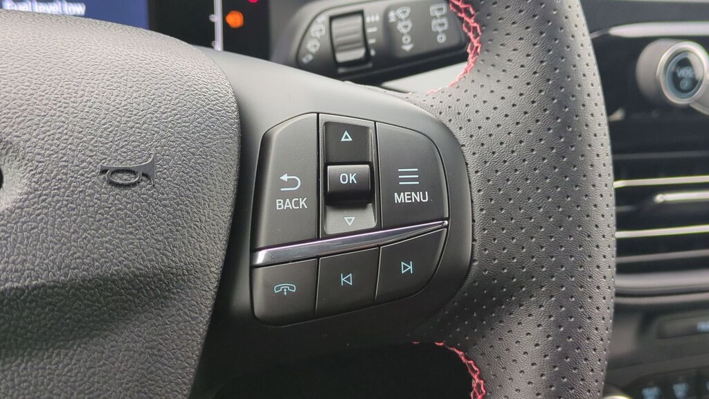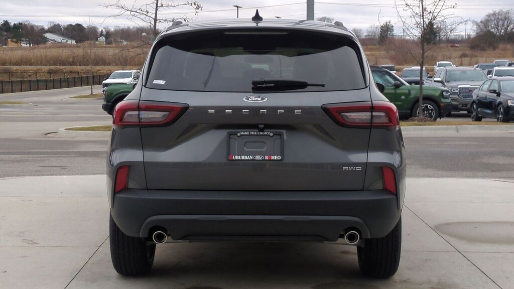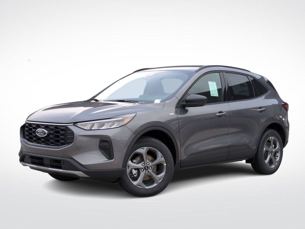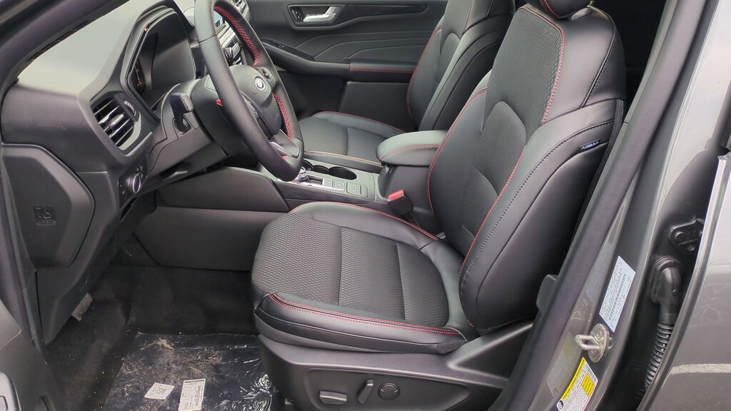 2026 Ford Escape ST-Line Is nicely equipped with Cold Weather Package (Heated Front Row Seats, Heated Sideview Mirrors, Heated Steering Wheel, and Remote Starter System), Equipment Group 300A (3.81 Axle Ratio, 4-Way Manual Front Passenger Seat, 8-Way Power Driver Seat, Ford App, Partial Vinyl/Cloth Front Sport Contour Bucket Seats with Red Stitching, Radio: AM/FM Stereo with SiriusXM 360L, SYNC 4, and Wheels: 18" Rock Metallic Painted Aluminum), AWD, 4-Wheel Disc Brakes, 6 Speakers, ABS brakes, Air Conditioning, Alloy wheels, AM/FM radio: SiriusXM 360L, Auto High-beam Headlights, Automatic temperature control, Brake assist, Bumpers: body-color, Compass, Delay-off headlights, Driver door bin, Driver vanity mirror, Dual front impact airbags, Dual front side impact airbags, Electronic Stability Control, Emergency communication system: SYNC 4 911 Assist, First Aid Kit, Four wheel independent suspension, Front anti-roll bar, Front Bucket Seats, Front Center Armrest, Front dual zone A/C, Front reading lights, Fully automatic headlights, Heated steering wheel, Illuminated entry, Knee airbag, Low tire pressure warning, Occupant sensing airbag, Outside temperature display, Overhead airbag, Overhead console, Panic alarm, Passenger door bin, Passenger vanity mirror, Power door mirrors, Power driver seat, Power Liftgate, Power steering, Power windows, Radio data system, Rear anti-roll bar, Rear reading lights, Rear seat center armrest, Rear window defroster, Rear window wiper, Remote keyless entry, Road Side Assistance Kit, Speed control, Speed-sensing steering, Speed-Sensitive Wipers, Split folding rear seat, Spoiler, Sport steering wheel, Steering wheel mounted audio controls, Tachometer, Telescoping steering wheel, Tilt steering wheel, Traction control, Trip computer, and Variably intermittent wipers. Factory MSRP: $35,720 Dealer Discount of $2,422 off MSRP
