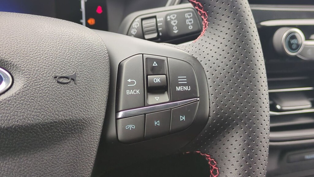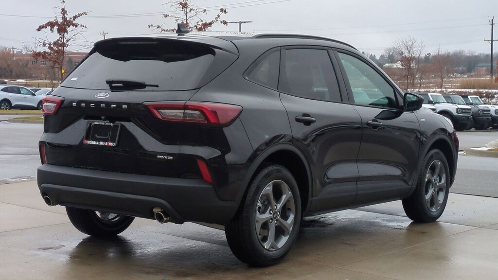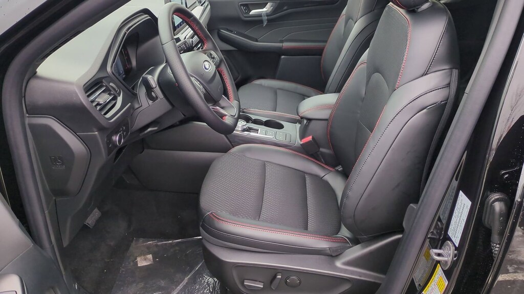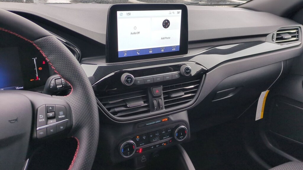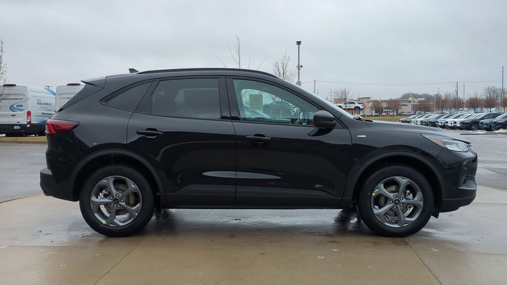 2026 Ford Escape ST-Line Is nicely equipped with Cold Weather Package (Heated Front Row Seats, Heated Sideview Mirrors, Heated Steering Wheel, and Remote Starter System), Equipment Group 300A (3.81 Axle Ratio, 4-Way Manual Front Passenger Seat, 8-Way Power Driver Seat, Ford App, Partial Vinyl/Cloth Front Sport Contour Bucket Seats with Red Stitching, Radio: AM/FM Stereo with SiriusXM 360L, SYNC 4, and Wheels: 18" Rock Metallic Painted Aluminum), AWD, 4-Wheel Disc Brakes, 6 Speakers, ABS brakes, Air Conditioning, Alloy wheels, AM/FM radio: SiriusXM 360L, Auto High-beam Headlights, Automatic temperature control, Brake assist, Bumpers: body-color, Compass, Delay-off headlights, Driver door bin, Driver vanity mirror, Dual front impact airbags, Dual front side impact airbags, Electronic Stability Control, Emergency communication system: SYNC 4 911 Assist, First Aid Kit, Four wheel independent suspension, Front anti-roll bar, Front Bucket Seats, Front Center Armrest, Front dual zone A/C, Front reading lights, Fully automatic headlights, Heated steering wheel, Illuminated entry, Knee airbag, Low tire pressure warning, Occupant sensing airbag, Outside temperature display, Overhead airbag, Overhead console, Panic alarm, Passenger door bin, Passenger vanity mirror, Power door mirrors, Power driver seat, Power Liftgate, Power steering, Power windows, Radio data system, Rear anti-roll bar, Rear reading lights, Rear seat center armrest, Rear window defroster, Rear window wiper, Remote keyless entry, Road Side Assistance Kit, Speed control, Speed-sensing steering, Speed-Sensitive Wipers, Split folding rear seat, Spoiler, Sport steering wheel, Steering wheel mounted audio controls, Tachometer, Telescoping steering wheel, Tilt steering wheel, Traction control, Trip computer, and Variably intermittent wipers. Factory MSRP: $35,720 Dealer Discount of $2,422 off MSRP