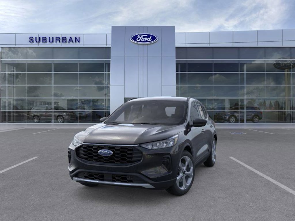 Recent Arrival! 2026 Ford Escape ST-Line Is nicely equipped with Cold Weather Package (Heated Front Row Seats, Heated Sideview Mirrors, Heated Steering Wheel, and Remote Starter System), Equipment Group 300A (3.81 Axle Ratio, 4-Way Manual Front Passenger Seat, 8-Way Power Driver Seat, Ford App, Partial Vinyl/Cloth Front Sport Contour Bucket Seats with Red Stitching, Radio: AM/FM Stereo with SiriusXM 360L, SYNC 4, and Wheels: 18" Rock Metallic Painted Aluminum), AWD, 4-Wheel Disc Brakes, 6 Speakers, ABS brakes, Air Conditioning, Alloy wheels, AM/FM radio: SiriusXM 360L, Auto High-beam Headlights, Automatic temperature control, Brake assist, Bumpers: body-color, Compass, Delay-off headlights, Driver door bin, Driver vanity mirror, Dual front impact airbags, Dual front side impact airbags, Electronic Stability Control, Emergency communication system: SYNC 4 911 Assist, First Aid Kit, Four wheel independent suspension, Front anti-roll bar, Front Bucket Seats, Front Center Armrest, Front dual zone A/C, Front reading lights, Fully automatic headlights, Heated steering wheel, Illuminated entry, Knee airbag, Low tire pressure warning, Occupant sensing airbag, Outside temperature display, Overhead airbag, Overhead console, Panic alarm, Passenger door bin, Passenger vanity mirror, Power door mirrors, Power driver seat, Power steering, Power windows, Radio data system, Rear anti-roll bar, Rear reading lights, Rear seat center armrest, Rear window defroster, Rear window wiper, Remote keyless entry, Road Side Assistance Kit, Speed control, Speed-sensing steering, Speed-Sensitive Wipers, Split folding rear seat, Spoiler, Sport steering wheel, Steering wheel mounted audio controls, Tachometer, Telescoping steering wheel, Tilt steering wheel, Traction control, Trip computer, and Variably intermittent wipers. Factory MSRP: $35,570 Dealer Discount of $2,407 off MSRP