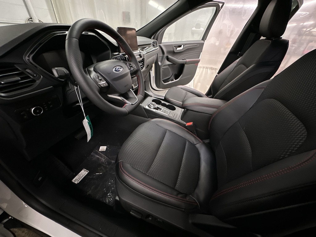 All Wheel Drive, Power Liftgate, Heated Driver Seat, Back-Up Camera, Hybrid, Satellite Radio, iPod/MP3 Input, Onboard Communications System, Aluminum Wheels, Remote Engine Start, Dual Zone A/C, WiFi Hotspot, Blind Spot Monitor, Lane Keeping Assist, Cross-Traffic Alert. Ford ST-Line Select with Star White Metallic Tri-Coat exterior and Ebony w/Red Stitching interior features a 4 Cylinder Engine with 192 HP at 6250 RPM*.