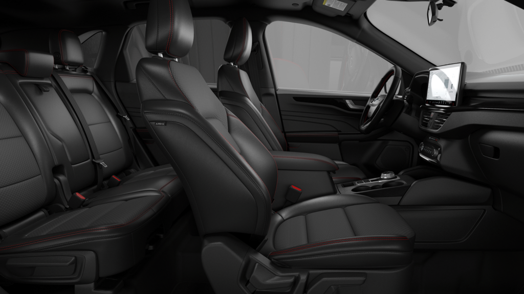 Escape ST-Line is nicely equipped with Cold Weather Package (Heated Front Row Seats, Heated Sideview Mirrors, Heated Steering Wheel, and Remote Starter System), Equipment Group 300A (3.81 Axle Ratio, 4-Way Manual Front Passenger Seat, 8-Way Power Driver Seat, Ford App, Partial Vinyl/Cloth Front Sport Contour Bucket Seats with Red Stitching, Radio: AM/FM Stereo with SiriusXM 360L, SYNC 4, and Wheels: 18" Rock Metallic Painted Aluminum), Tech Pack #1 (Adaptive Cruise Control with Stop-and-Go, Connected Navigation (1-Year Included), Digital Rear View Camera, Evasive Steering Assist, Ford Co-Pilot360 Assist+, Intersection Assist, Predictive Speed Assist, Rear Parking Sensor, and SYNC 4 with Enhanced Voice Recognition), 4-Wheel Disc Brakes, 6 Speakers, ABS brakes, Air Conditioning, Alloy wheels, AM/FM radio: SiriusXM 360L, Auto High-beam Headlights, Automatic temperature control, Black Roof-Rack Side Rails, Brake assist, Bumpers: body-color, Compass, Delay-off headlights, Driver door bin, Driver vanity mirror, Dual front impact airbags, Dual front side impact airbags, Electronic Stability Control, Emergency communication system: SYNC 4 911 Assist, Four wheel independent suspension, Front anti-roll bar, Front Bucket Seats, Front Center Armrest, Front dual zone A/C, Front License Plate Bracket, Front reading lights, Fully automatic headlights, Heated steering wheel, Illuminated entry, Knee airbag, Low tire pressure warning, Occupant sensing airbag, Outside temperature display, Overhead airbag, Overhead console, Panic alarm, Panoramic Vista Roof, Passenger door bin, Passenger vanity mirror, Power door mirrors, Power driver seat, Power Liftgate, Power steering, Power windows, Radio data system, Rear anti-roll bar, Rear reading lights, Rear seat center armrest, Rear window defroster, Rear window wiper, Remote keyless entry, Speed control, Speed-sensing steering, Speed-Sensitive Wipers, Split folding rear seat, Spoiler, Sport steering wheel, Steering wheel mounted audio controls, Tachometer, Telescoping steering wheel, Tilt steering wheel, Traction control, Trip computer, and Variably intermittent wipers. See dealer for details. Price may include Ford Employee discount. Price does not include licensing costs, registration fees, taxes and dealer doc fee of $280, which are to be paid by the consumer.$2000 - Bonus Customer Cash. Exp. 03/31/2026