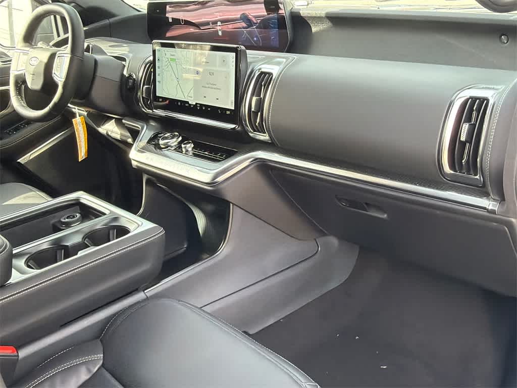 Expedition Platinum is nicely equipped with Drivers Package (Radio: B&O Play Unleashed), Equipment Group 600A Standard Package (2nd Row Power-Folding Captains Chairs, 3.73 Axle Ratio, BlueCruise Equipped (90-Day Trial), Ford Digital Experience, and Wheels: 20 x 8.5 Ebony Bright Machined Aluminum), Ford Connectivity Package (1-Year Included), Stealth Appearance Package (Black Belt Molding, Black Roof Rails, Carbon Black Front Bumper/Fascia, Rear Side Windows Laminated Glass, and Signature Grille Lighting), Stealth Performance Package (Black Onyx Painted Power Deployable Running Boards, Engine Sound Enhancer, High Flow Exhaust System, and Wheels: 24 x 9.5 Ebony Painted Aluminum), 4WD, 10 Speakers, 3rd row seats: split-bench, 4-Wheel Disc Brakes, ABS brakes, Air Conditioning, Alloy wheels, AM/FM radio: SiriusXM with 360L, Apple CarPlay/Android Auto, Auto High-beam Headlights, Auto-dimming door mirrors, Auto-dimming Rear-View mirror, Automatic temperature control, Brake assist, Bumpers: body-color, Compass, Delay-off headlights, Driver door bin, Driver vanity mirror, Dual front impact airbags, Dual front side impact airbags, Electronic Stability Control, Emergency communication system: 911 Assist, Exterior Parking Camera Rear, Four wheel independent suspension, Front anti-roll bar, Front Bucket Seats, Front Center Armrest, Front dual zone A/C, Front reading lights, Fully automatic headlights, Garage door transmitter, Genuine wood dashboard insert, Genuine wood door panel insert, Heated door mirrors, Heated front seats, Heated rear seats, Heated steering wheel, Illuminated entry, Intersection Assist, Leather steering wheel, Low tire pressure warning, Memory seat, Navigation System, Occupant sensing airbag, Outside temperature display, Overhead airbag, Overhead console, Panic alarm, Passenger door bin, Passenger vanity mirror, Power door mirrors, Power driver seat, Power moonroof: Vista Roof, Power passenger seat, Power steering, Power windows, Radio data system, Rain sensing wipers, Rear air conditioning, Rear anti-roll bar, Rear reading lights, Rear window defroster, Rear window wiper, Reclining 3rd row seat, Remote keyless entry, Security system, Speed control, Speed-sensing steering, Speed-Sensitive Wipers, Split folding rear seat, Spoiler, Steering wheel memory, Steering wheel mounted audio controls, Tachometer, Telescoping steering wheel, Tilt steering wheel, Traction control, Trip computer, Turn signal indicator mirrors, Variably intermittent wipers, Ventilated front seats, and Voltmeter.