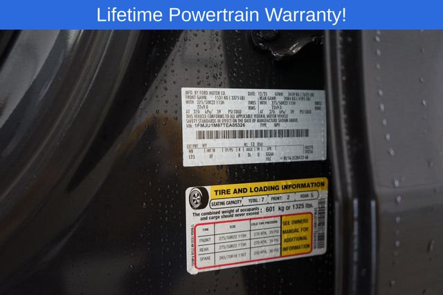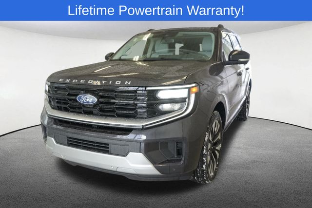 Expedition Platinum is nicely equipped with Ford Connectivity Package (1-Year Included), 10 Speakers, 2nd Row Power-Folding Captain's Chairs, 3.73 Axle Ratio, 3rd row seats: split-bench, 4-Wheel Disc Brakes, ABS brakes, Air Conditioning, Alloy wheels, AM/FM radio: SiriusXM with 360L, Apple CarPlay/Android Auto, Auto High-beam Headlights, Auto-dimming door mirrors, Auto-dimming Rear-View mirror, Automatic temperature control, Brake assist, Bumpers: body-color, Compass, Delay-off headlights, Driver door bin, Driver vanity mirror, Dual front impact airbags, Dual front side impact airbags, Electronic Stability Control, Emergency communication system: 911 Assist, Exterior Parking Camera Rear, Ford Digital Experience, Four wheel independent suspension, Front anti-roll bar, Front Bucket Seats, Front Center Armrest, Front dual zone A/C, Front reading lights, Fully automatic headlights, Garage door transmitter, Genuine wood dashboard insert, Genuine wood door panel insert, Heated and Ventilated Leather Front Captain's Chairs, Heated door mirrors, Heated front seats, Heated rear seats, Heated steering wheel, Illuminated entry, Leather steering wheel, Low tire pressure warning, Memory seat, Navigation System, Occupant sensing airbag, Outside temperature display, Overhead airbag, Overhead console, Panic alarm, Passenger door bin, Passenger vanity mirror, Power door mirrors, Power driver seat, Power moonroof: Vista Roof, Power passenger seat, Power steering, Power windows, Radio data system, Radio: B&O Sound System by Bang and Olufsen, Rain sensing wipers, Rear air conditioning, Rear anti-roll bar, Rear reading lights, Rear window defroster, Rear window wiper, Reclining 3rd row seat, Remote keyless entry, Security system, SiriusXM with 360L, Speed control, Speed-sensing steering, Speed-Sensitive Wipers, Split folding rear seat, Spoiler, Steering wheel memory, Steering wheel mounted audio controls, Tachometer, Telescoping steering wheel, Tilt steering wheel, Traction control, Trip computer, Turn signal indicator mirrors, Variably intermittent wipers, Ventilated front seats, Voltmeter, and Wheels: 20" x 8.5" Ebony Bright Machined Aluminum.