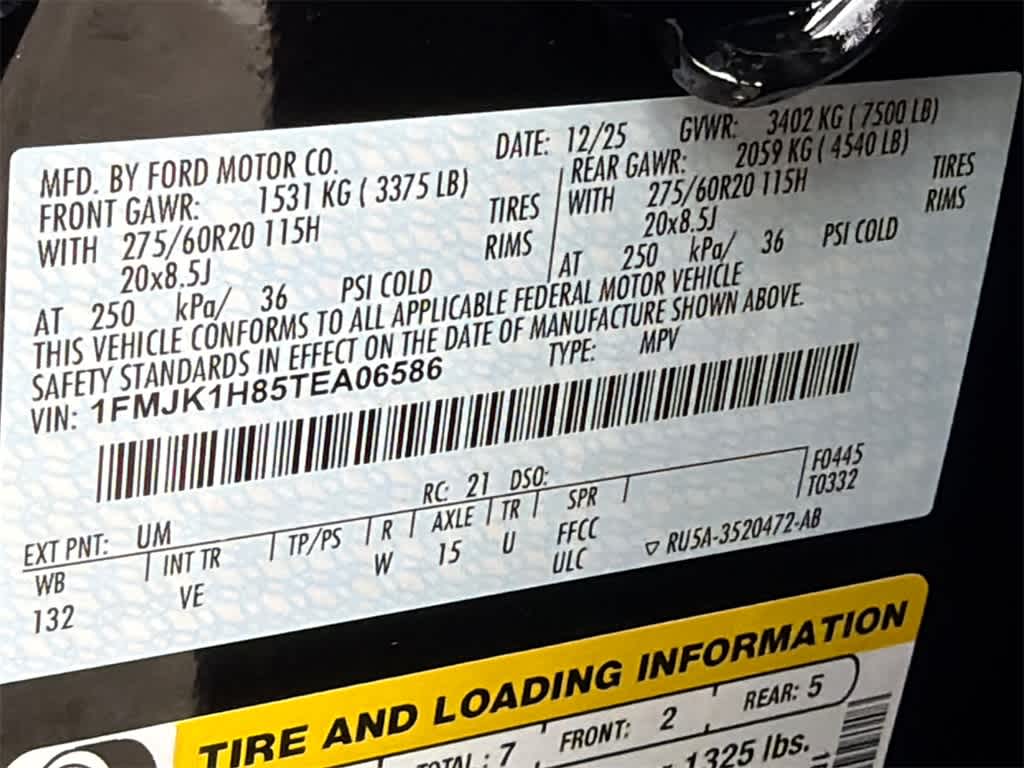Expedition Max Active is nicely equipped with Equipment Group 202A Touring Package (2nd Row Power-Folding Captains Chairs, 3.31 Axle Ratio, 360-Degree Zone Lighting, 3rd Row Vinyl Seats, 4-Door Intelligent Access (Lock/Unlock), 4-Way Manual Head Restraints, Active Air Dam, ActiveX-Trimmed Front Heated Captains Chairs, Flex Powered Console, Ford Digital Experience, Ford Split Gate, Front Side Laminated Glass, Heated Steering Wheel, Memory Driver Seat, Pro Power Onboard - 400W, Rain Sensitive Windshield Wipers, USB Ports, and Wheels: 18 x 8.5 Dark Alloy Painted Aluminum), Ford Connectivity Package (1-Year Included), 3rd Row Flexible Seating (40/20/40), 3rd row seats: split-bench, 4-Wheel Disc Brakes, 6 Speakers, ABS brakes, Air Conditioning, Alloy wheels, AM/FM radio: SiriusXM with 360L, Apple CarPlay/Android Auto, Auto High-beam Headlights, Auto-dimming Rear-View mirror, Automatic temperature control, Brake assist, Bumpers: body-color, Cloth Front Captains Chairs, Compass, Delay-off headlights, Driver door bin, Driver vanity mirror, Dual front impact airbags, Dual front side impact airbags, Electronic Stability Control, Emergency communication system: 911 Assist, Exterior Parking Camera Rear, Four wheel independent suspension, Front anti-roll bar, Front Bucket Seats, Front Center Armrest, Front dual zone A/C, Front reading lights, Fully automatic headlights, Heated door mirrors, Illuminated entry, Intersection Assist, Low tire pressure warning, Navigation System, Occupant sensing airbag, Outside temperature display, Overhead airbag, Overhead console, Panic alarm, Passenger door bin, Passenger vanity mirror, Power door mirrors, Power driver seat, Power passenger seat, Power steering, Power windows, Radio data system, Rear air conditioning, Rear anti-roll bar, Rear reading lights, Rear window defroster, Rear window wiper, Reclining 3rd row seat, Remote keyless entry, Security system, Speed control, Speed-sensing steering, Speed-Sensitive Wipers, Split folding rear seat, Spoiler, Steering wheel mounted audio controls, Tachometer, Telescoping steering wheel, Tilt steering wheel, Traction control, Trip computer, Variably intermittent wipers, Voltmeter, and Wheels: 20 x 8.5 Bright Machined Aluminum.