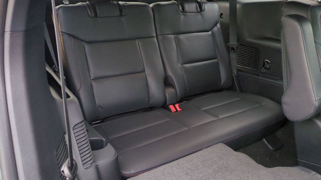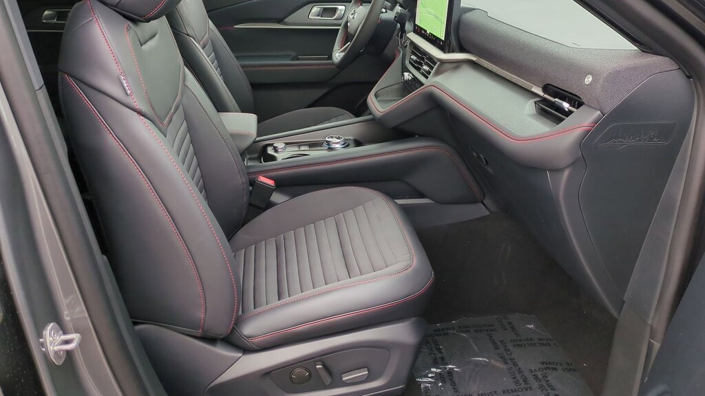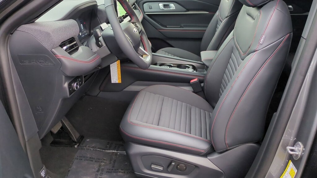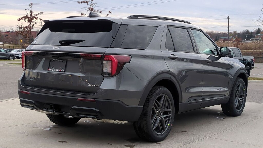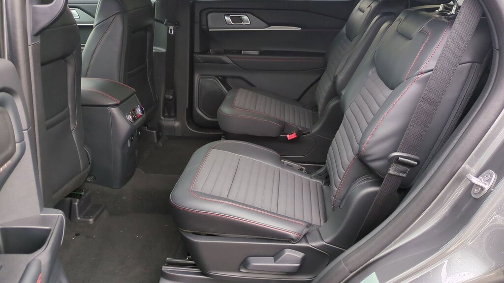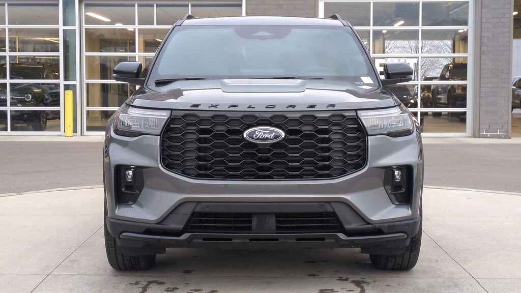 2026 Ford Explorer ST-Line Is nicely equipped with Equipment Group 300A Standard Package (Heated Unique Cloth Captain's Chairs, Radio: B&O Sound System by Bang and Olufsen, and Wheels: 20" Ebony-Painted Machined Aluminum), Premium Package (110V/150W AC Power Outlet, 2nd Row Heated Seats, Ambient Lighting, Auto-Dimming Interior Rear-View Mirror, Manual-Folding Sideview Mirrors, Memory Driver's Seat, and Rain-Sensing Wipers (front Only)), ST-Line Street Pack (Performance Brakes, Red Painted Performance Front and Rear Brake Calipers, and Wheels: 21" Magnetite-Painted Aluminum), 4WD, 10 Speakers, 2nd Row Captain's Chairs w/E-Z Entry and Armrest, 3rd row seats: bench, 4-Wheel Disc Brakes, ABS brakes, Air Conditioning, Alloy wheels, AM/FM radio: SiriusXM with 360L, Apple CarPlay/Android Auto, Auto High-beam Headlights, Automatic temperature control, BlueCruise (equipment + 1-Year + 90-Day Plan), BlueCruise Hardware, Brake assist, Bumpers: body-color, Compass, Delay-off headlights, Driver door bin, Driver vanity mirror, Dual front impact airbags, Dual front side impact airbags, Electronic Stability Control, Emergency communication system: 911 Assist, Exterior Parking Camera Rear, First Aid Kit, Four wheel independent suspension, Front anti-roll bar, Front Bucket Seats, Front Center Armrest, Front dual zone A/C, Front fog lights, Front reading lights, Fully automatic headlights, Garage door transmitter, Heated door mirrors, Heated front seats, Heated steering wheel, Illuminated entry, Knee airbag, Leather steering wheel, Low tire pressure warning, Navigation System, Occupant sensing airbag, Outside temperature display, Overhead airbag, Overhead console, Panic alarm, Panoramic Fixed Glass Roof with Power Shade, Passenger door bin, Passenger vanity mirror, Power door mirrors, Power driver seat, Power Liftgate, Power passenger seat, Power steering, Power windows, Rear air conditioning, Rear anti-roll bar, Rear reading lights, Rear window defroster, Rear window wiper, Remote keyless entry, Security system, Speed control, Speed-sensing steering, Speed-Sensitive Wipers, Split folding rear seat, Spoiler, Steering wheel mounted audio controls, Tachometer, Telescoping steering wheel, Tilt steering wheel, Traction control, Trip computer, and Variably intermittent wipers. Factory MSRP: $53,910 Dealer Discount of $3,939 off MSRP