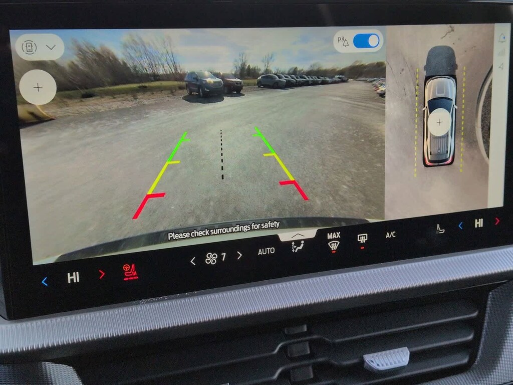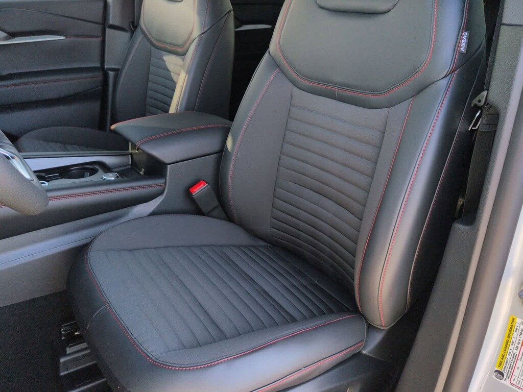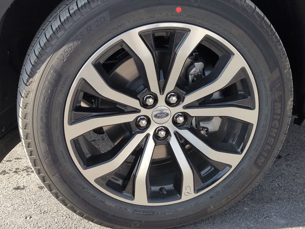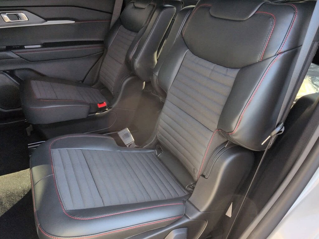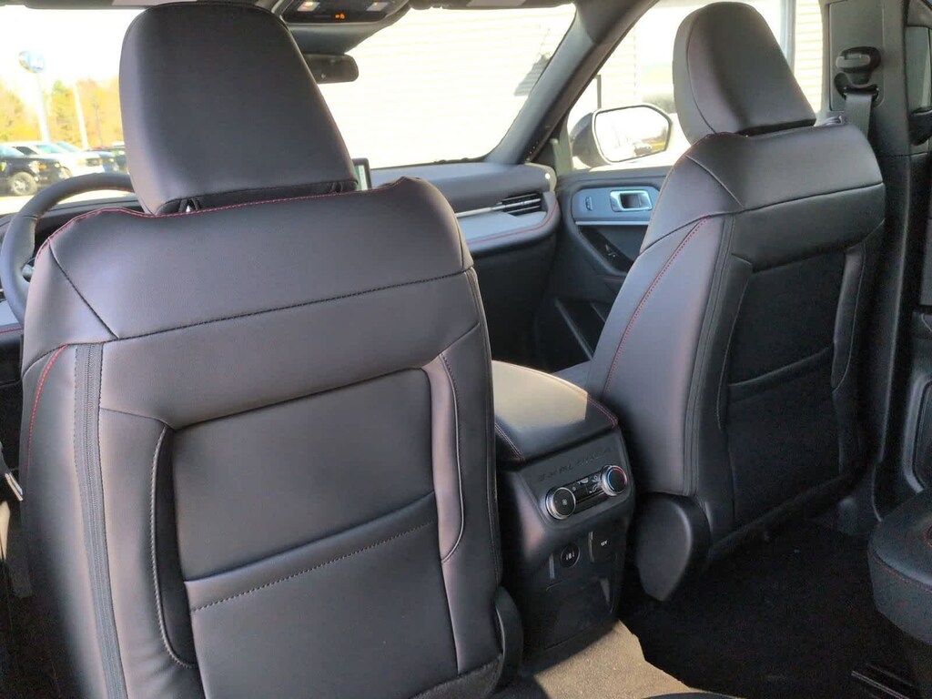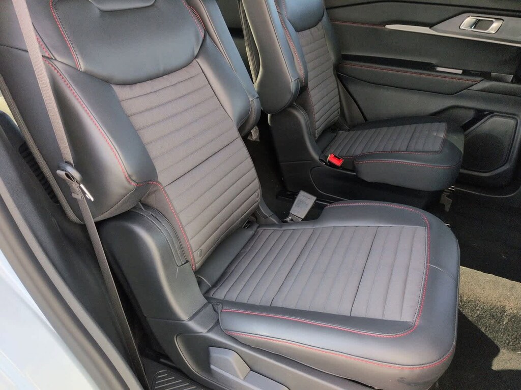 Explorer ST-Line is nicely equipped with Equipment Group 300A Standard Package (Heated Unique Cloth Captains Chairs, Radio: B&O Sound System by Bang and Olufsen, and Wheels: 20 Ebony-Painted Machined Aluminum), 10 Speakers, 2nd Row Captains Chairs w/E-Z Entry and Armrest, 3rd row seats: bench, 4-Wheel Disc Brakes, ABS brakes, Air Conditioning, Alloy wheels, AM/FM radio: SiriusXM with 360L, Apple CarPlay/Android Auto, Auto High-beam Headlights, Automatic temperature control, BlueCruise (equipment + 1-Year + 90-Day Plan), BlueCruise Hardware, Brake assist, Bumpers: body-color, Compass, Delay-off headlights, Driver door bin, Driver vanity mirror, Dual front impact airbags, Dual front side impact airbags, Electronic Stability Control, Emergency communication system: 911 Assist, Exterior Parking Camera Rear, Four wheel independent suspension, Front and 2nd Rows Floor Liners with Carper Floor Mats, Front anti-roll bar, Front Bucket Seats, Front Center Armrest, Front dual zone A/C, Front fog lights, Front License Plate Bracket, Front reading lights, Fully automatic headlights, Garage door transmitter, Heated door mirrors, Heated front seats, Heated steering wheel, Illuminated entry, Internet access capable: FordPass Connect 5G, Knee airbag, Leather steering wheel, Low tire pressure warning, Navigation System, Occupant sensing airbag, Outside temperature display, Overhead airbag, Overhead console, Panic alarm, Passenger door bin, Passenger vanity mirror, Power door mirrors, Power driver seat, Power Liftgate, Power passenger seat, Power steering, Power windows, Rear air conditioning, Rear anti-roll bar, Rear reading lights, Rear window defroster, Rear window wiper, Remote keyless entry, Security system, Speed control, Speed-sensing steering, Speed-Sensitive Wipers, Split folding rear seat, Spoiler, Steering wheel mounted audio controls, Tachometer, Telescoping steering wheel, Tilt steering wheel, Traction control, Trip computer, and Variably intermittent wipers.