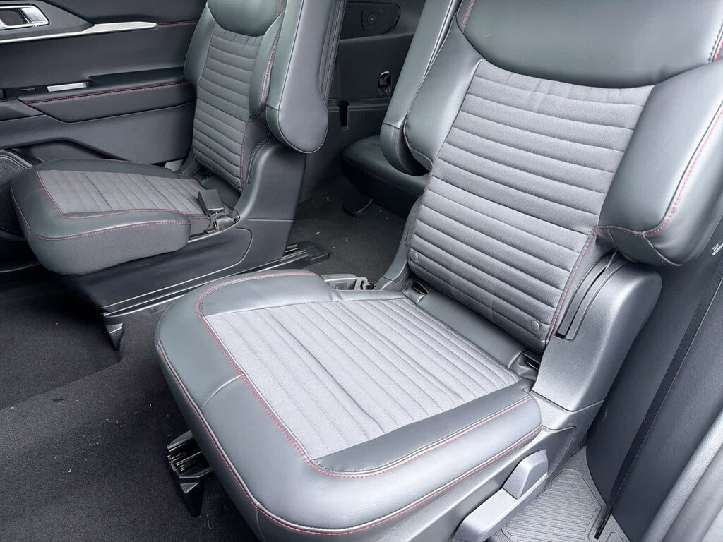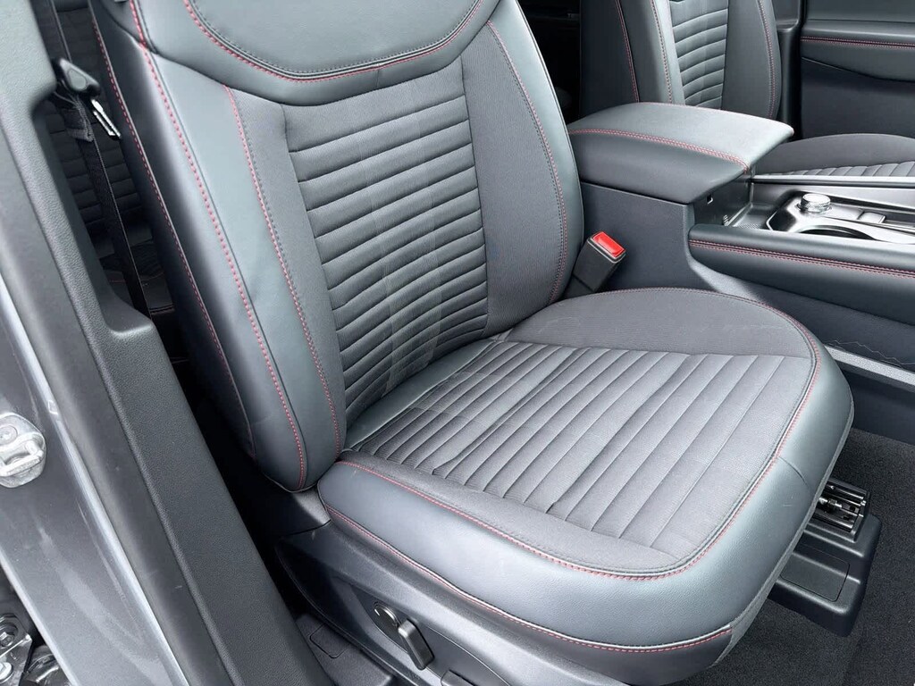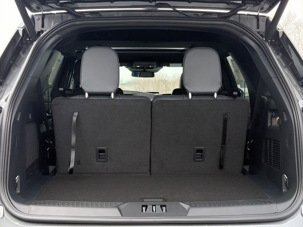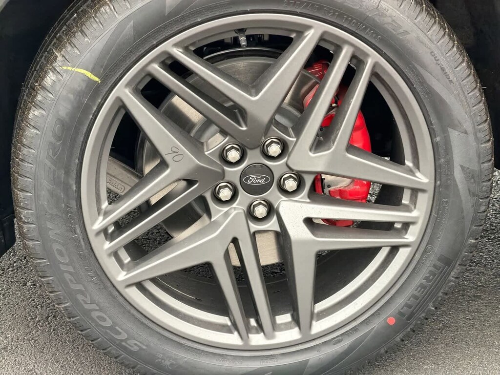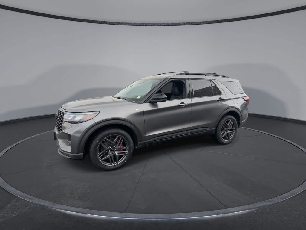 Explorer ST-Line is nicely equipped with Equipment Group 300A Standard Package (Heated Unique Cloth Captains Chairs, Radio: B&O Sound System by Bang and Olufsen, and Wheels: 20 Ebony-Painted Machined Aluminum), Premium Package (110V/150W AC Power Outlet, 2nd Row Heated Seats, Ambient Lighting, Auto-Dimming Interior Rear-View Mirror, Manual-Folding Sideview Mirrors, Memory Drivers Seat, and Rain-Sensing Wipers (front Only)), ST-Line Street Pack (Performance Brakes, Red Painted Performance Front and Rear Brake Calipers, and Wheels: 21 Magnetite-Painted Aluminum), 10 Speakers, 2nd Row Captains Chairs w/E-Z Entry and Armrest, 3rd row seats: bench, 4-Wheel Disc Brakes, ABS brakes, Air Conditioning, Alloy wheels, AM/FM radio: SiriusXM with 360L, Apple CarPlay/Android Auto, Auto High-beam Headlights, Automatic temperature control, BlueCruise (equipment + 1-Year + 90-Day Plan), BlueCruise Hardware, Brake assist, Bumpers: body-color, Compass, Delay-off headlights, Driver door bin, Driver vanity mirror, Dual front impact airbags, Dual front side impact airbags, Electronic Stability Control, Emergency communication system: 911 Assist, Exterior Parking Camera Rear, Four wheel independent suspension, Front and 2nd Rows Floor Liners with Carper Floor Mats, Front anti-roll bar, Front Bucket Seats, Front Center Armrest, Front dual zone A/C, Front fog lights, Front License Plate Bracket, Front reading lights, Fully automatic headlights, Garage door transmitter, Heated door mirrors, Heated front seats, Heated steering wheel, Illuminated entry, Knee airbag, Leather steering wheel, Low tire pressure warning, Navigation System, Occupant sensing airbag, Outside temperature display, Overhead airbag, Overhead console, Panic alarm, Panoramic Fixed Glass Roof with Power Shade, Passenger door bin, Passenger vanity mirror, Power door mirrors, Power driver seat, Power Liftgate, Power passenger seat, Power steering, Power windows, Rear air conditioning, Rear anti-roll bar, Rear reading lights, Rear window defroster, Rear window wiper, Remote keyless entry, SecuriCode Keyless Entry Keypad, Security system, Speed control, Speed-sensing steering, Speed-Sensitive Wipers, Split folding rear seat, Spoiler, Steering wheel mounted audio controls, Tachometer, Telescoping steering wheel, Tilt steering wheel, Traction control, Trip computer, and Variably intermittent wipers.