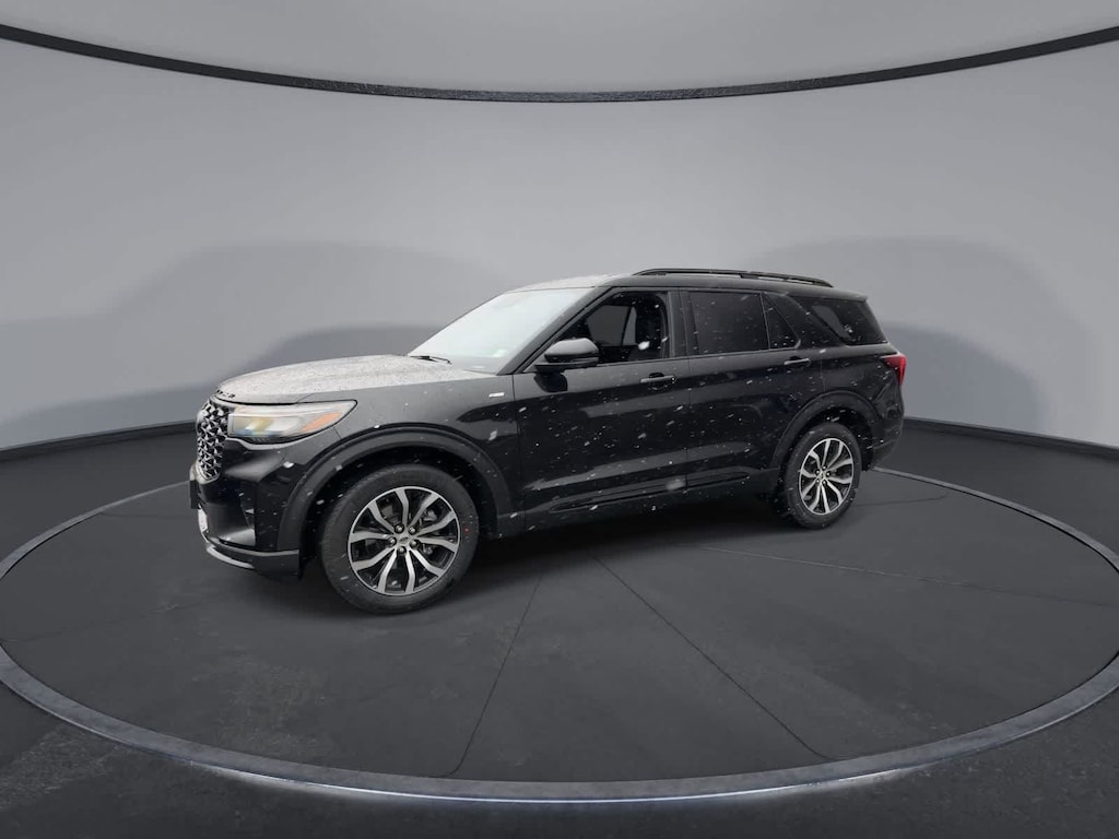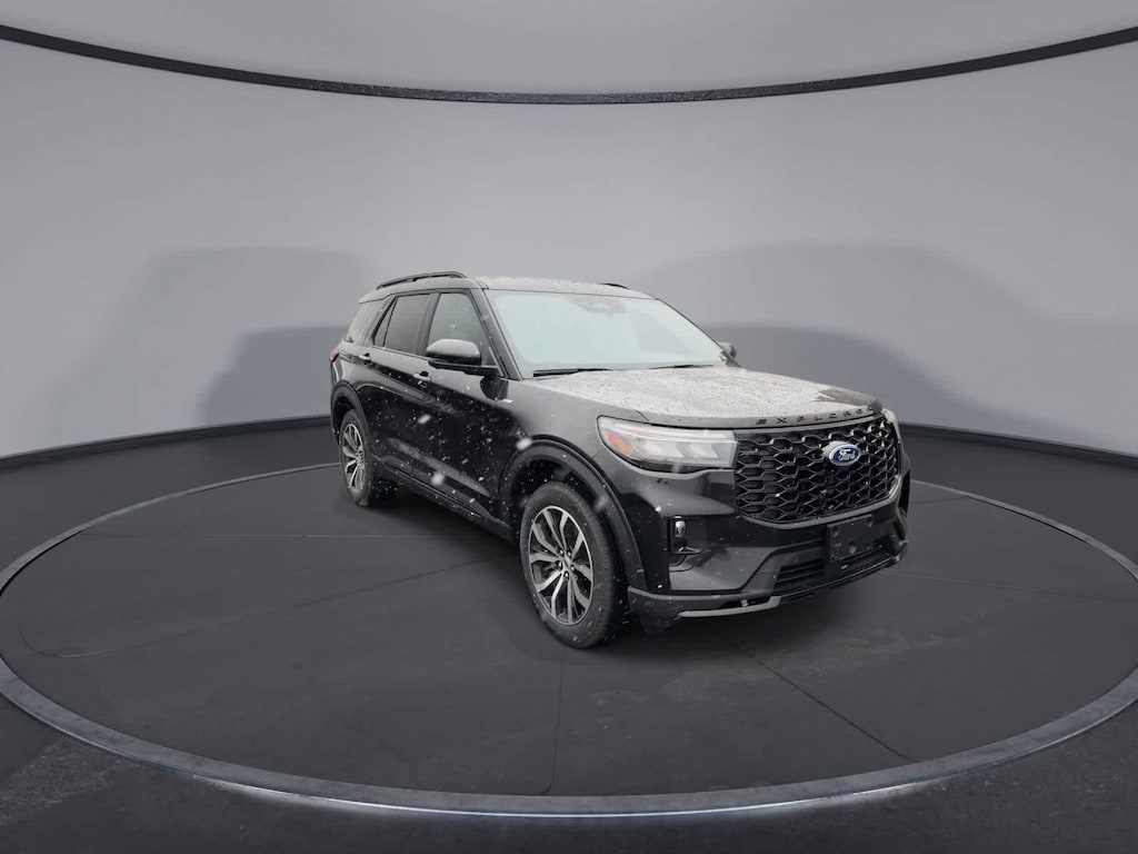 Explorer ST-Line is nicely equipped with Equipment Group 300A Standard Package (Heated Unique Cloth Captains Chairs, Radio: B&O Sound System by Bang and Olufsen, and Wheels: 20 Ebony-Painted Machined Aluminum), Ford Connectivity Package (one-Time Purchase - 7 Years), 10 Speakers, 2nd Row Captains Chairs w/E-Z Entry and Armrest, 3rd row seats: bench, 4-Wheel Disc Brakes, ABS brakes, Air Conditioning, Alloy wheels, AM/FM radio: SiriusXM with 360L, Apple CarPlay/Android Auto, Auto High-beam Headlights, Automatic temperature control, BlueCruise (equipment + 1-Year + 90-Day Plan), BlueCruise Hardware, Brake assist, Bumpers: body-color, Compass, Delay-off headlights, Driver door bin, Driver vanity mirror, Dual front impact airbags, Dual front side impact airbags, Electronic Stability Control, Emergency communication system: 911 Assist, Exterior Parking Camera Rear, Four wheel independent suspension, Front and 2nd Rows Floor Liners with Carper Floor Mats, Front anti-roll bar, Front Bucket Seats, Front Center Armrest, Front dual zone A/C, Front fog lights, Front License Plate Bracket, Front reading lights, Fully automatic headlights, Garage door transmitter, Heated door mirrors, Heated front seats, Heated steering wheel, Illuminated entry, Knee airbag, Leather steering wheel, Low tire pressure warning, Navigation System, Occupant sensing airbag, Outside temperature display, Overhead airbag, Overhead console, Panic alarm, Passenger door bin, Passenger vanity mirror, Power door mirrors, Power driver seat, Power Liftgate, Power passenger seat, Power steering, Power windows, Rear air conditioning, Rear anti-roll bar, Rear reading lights, Rear window defroster, Rear window wiper, Remote keyless entry, Security system, Speed control, Speed-sensing steering, Speed-Sensitive Wipers, Split folding rear seat, Spoiler, Steering wheel mounted audio controls, Tachometer, Telescoping steering wheel, Tilt steering wheel, Traction control, Trip computer, and Variably intermittent wipers.