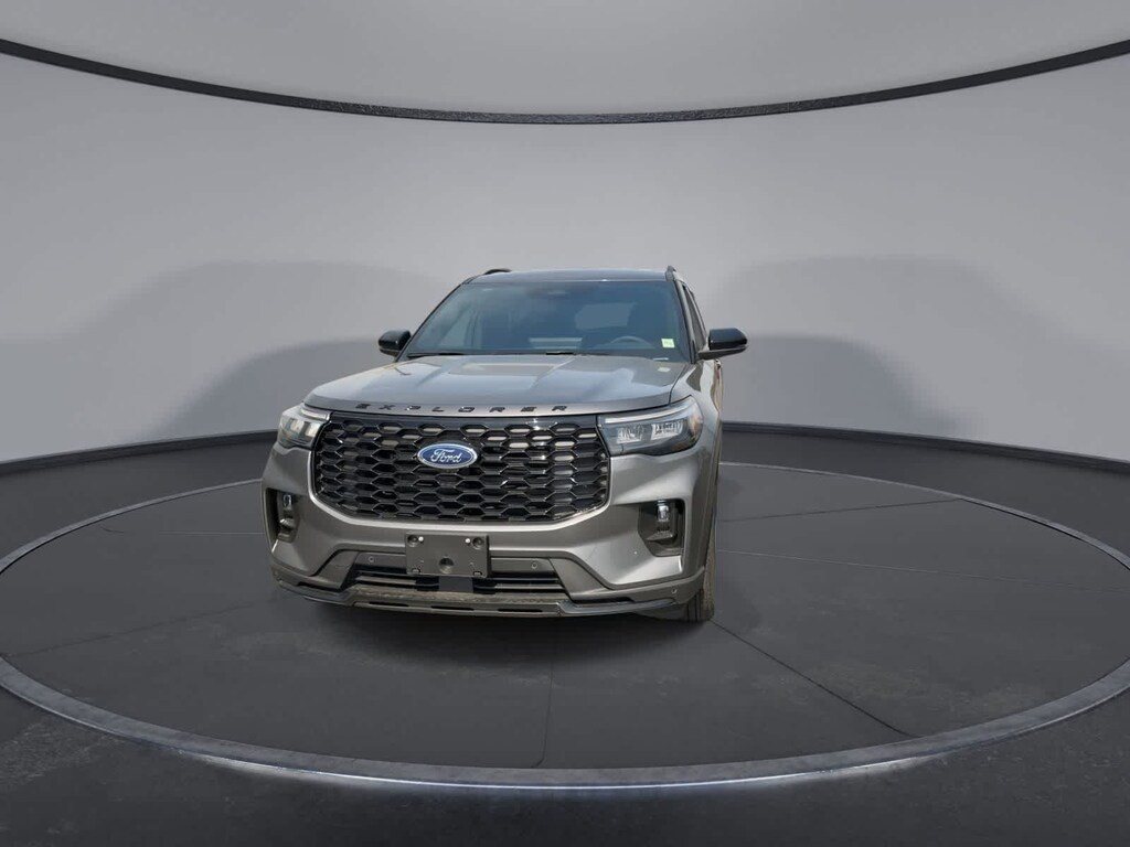 Explorer ST-Line is nicely equipped with Equipment Group 300A Standard Package (Heated Unique Cloth Captains Chairs, Radio: B&O Sound System by Bang and Olufsen, and Wheels: 20 Ebony-Painted Machined Aluminum), Ford Connectivity Package (one-Time Purchase - 7 Years), 10 Speakers, 2nd Row Captains Chairs w/E-Z Entry and Armrest, 3rd row seats: bench, 4-Wheel Disc Brakes, ABS brakes, Air Conditioning, Alloy wheels, AM/FM radio: SiriusXM with 360L, Apple CarPlay/Android Auto, Auto High-beam Headlights, Automatic temperature control, BlueCruise (equipment + 1-Year + 90-Day Plan), BlueCruise Hardware, Brake assist, Bumpers: body-color, Compass, Delay-off headlights, Driver door bin, Driver vanity mirror, Dual front impact airbags, Dual front side impact airbags, Electronic Stability Control, Emergency communication system: 911 Assist, Exterior Parking Camera Rear, Four wheel independent suspension, Front and 2nd Rows Floor Liners with Carper Floor Mats, Front anti-roll bar, Front Bucket Seats, Front Center Armrest, Front dual zone A/C, Front fog lights, Front License Plate Bracket, Front reading lights, Fully automatic headlights, Garage door transmitter, Heated door mirrors, Heated front seats, Heated steering wheel, Illuminated entry, Knee airbag, Leather steering wheel, Low tire pressure warning, Navigation System, Occupant sensing airbag, Outside temperature display, Overhead airbag, Overhead console, Panic alarm, Passenger door bin, Passenger vanity mirror, Power door mirrors, Power driver seat, Power Liftgate, Power passenger seat, Power steering, Power windows, Rear air conditioning, Rear anti-roll bar, Rear reading lights, Rear window defroster, Rear window wiper, Remote keyless entry, Security system, Speed control, Speed-sensing steering, Speed-Sensitive Wipers, Split folding rear seat, Spoiler, Steering wheel mounted audio controls, Tachometer, Telescoping steering wheel, Tilt steering wheel, Traction control, Trip computer, and Variably intermittent wipers.