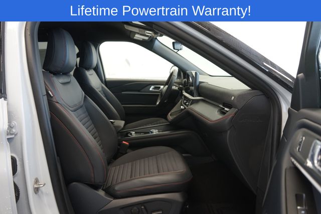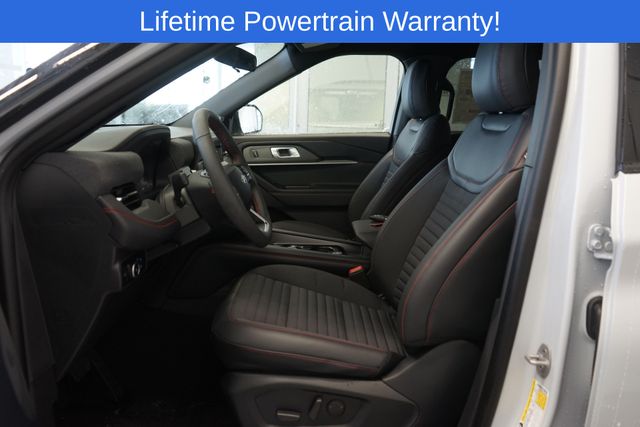 Explorer ST-Line is nicely equipped with Equipment Group 300A Standard Package (Heated Unique Cloth Captain's Chairs, Radio: B&O Sound System by Bang and Olufsen, and Wheels: 20" Ebony-Painted Machined Aluminum), Ford Connectivity Package (one-Time Purchase - 7 Years), ST-Line Street Pack (Performance Brakes, Red Painted Performance Front and Rear Brake Calipers, and Wheels: 21" Magnetite-Painted Aluminum), 10 Speakers, 3rd row seats: bench, 4-Wheel Disc Brakes, ABS brakes, Air Conditioning, Alloy wheels, AM/FM radio: SiriusXM with 360L, Apple CarPlay/Android Auto, Auto High-beam Headlights, Automatic temperature control, BlueCruise (equipment + 1-Year + 90-Day Plan), BlueCruise Hardware, Brake assist, Bumpers: body-color, Compass, Delay-off headlights, Driver door bin, Driver vanity mirror, Dual front impact airbags, Dual front side impact airbags, Electronic Stability Control, Emergency communication system: 911 Assist, Exterior Parking Camera Rear, Four wheel independent suspension, Front and 2nd Rows Floor Liners with Carper Floor Mats, Front anti-roll bar, Front Bucket Seats, Front Center Armrest, Front dual zone A/C, Front fog lights, Front License Plate Bracket, Front reading lights, Fully automatic headlights, Garage door transmitter, Heated door mirrors, Heated front seats, Heated steering wheel, Illuminated entry, Knee airbag, Leather steering wheel, Low tire pressure warning, Navigation System, Occupant sensing airbag, Outside temperature display, Overhead airbag, Overhead console, Panic alarm, Passenger door bin, Passenger vanity mirror, Power door mirrors, Power driver seat, Power Liftgate, Power passenger seat, Power steering, Power windows, Rear air conditioning, Rear anti-roll bar, Rear reading lights, Rear window defroster, Rear window wiper, Remote keyless entry, Security system, Speed control, Speed-sensing steering, Speed-Sensitive Wipers, Split folding rear seat, Spoiler, Steering wheel mounted audio controls, Tachometer, Telescoping steering wheel, Tilt steering wheel, Traction control, Trip computer, and Variably intermittent wipers.