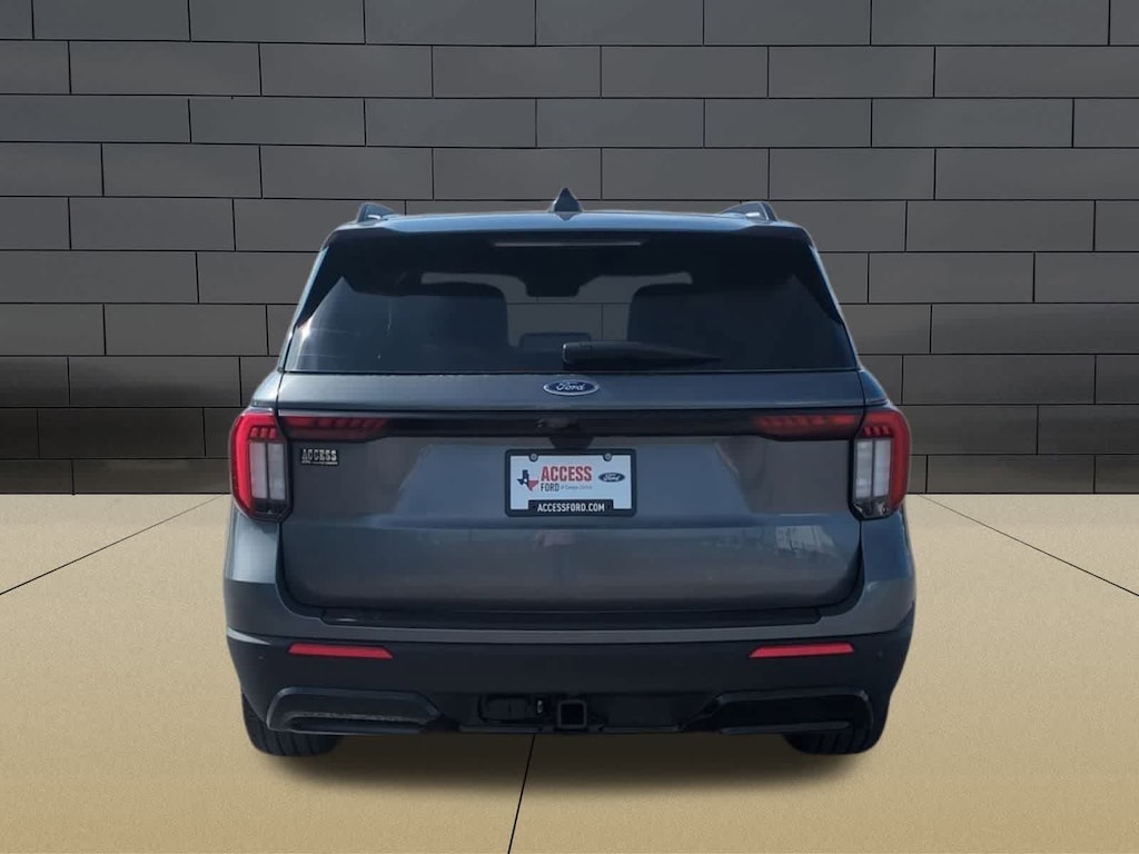ST-LINE STREET PACK Wheels: 21 Magnetite-Painted Aluminum, Tires: P275/45R21 AS BSW, Performance Brakes, Red Painted Perf Front & Rear Brake Calipers, PREMIUM PACKAGE 110V/150W AC Power Outlet, Replaces the powerpoint port on the rear side of the center floor console, Auto-Dimming Interior Rearview Mirror, Memory Drivers Seat, Manual-Folding Sideview Mirrors, power and heated glass, LED turn signal indicators, security approach lamps, drivers side auto-dimming and driver and passenger side memory, Rain-Sensing Wipers (Front Only), Ambient Lighting, 2nd Row Heated Seats, SECURICODE KEYLESS ENTRY KEYPAD, 18 SPARE WHEEL & JACK KIT 18 spare tire, 2ND ROW CAPTAINS CHAIRS W/E-Z ENTRY & ARMREST E-Z Entry is manually activated, Replaces standard 2nd row 35/30/35 bench seats, TRANSMISSION: 10-SPEED AUTOMATIC (STD). 2026 Ford Explorer with Carbonized Gray exterior and Onyx interior features a 4 Cylinder Engine with 300 HP at 5500 RPM*.