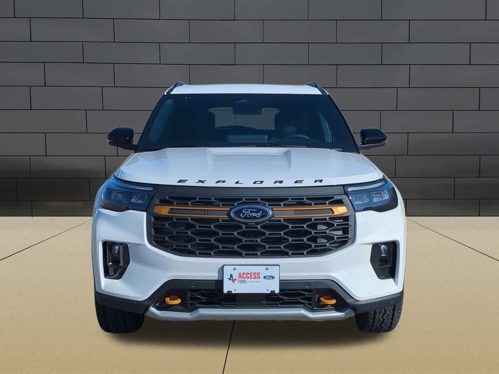 SECURICODE KEYLESS ENTRY KEYPAD, 18 SPARE WHEEL & JACK KIT 18 spare tire, TRANSMISSION: 10-SPEED AUTOMATIC (STD). 2026 Ford Explorer with Star White Metallic Tri-Coat exterior and Onyx interior features a 4 Cylinder Engine with 300 HP at 5500 RPM*.