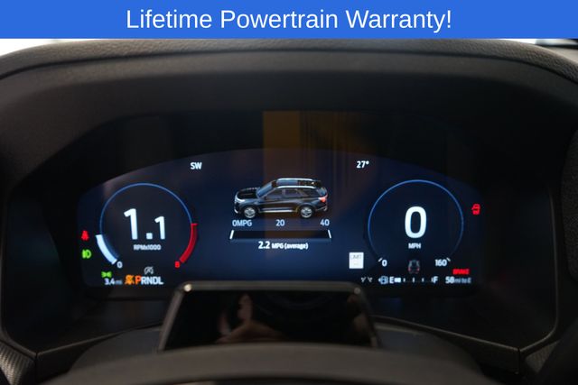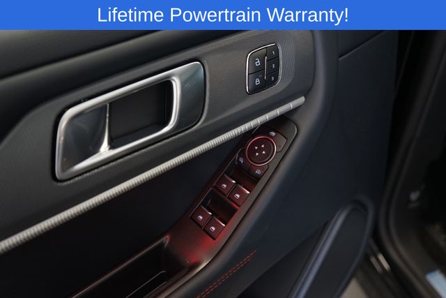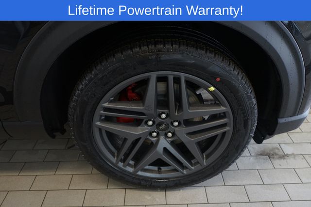 Explorer ST-Line is nicely equipped with 10 Speakers, 3rd row seats: bench, 4-Wheel Disc Brakes, ABS brakes, Air Conditioning, Alloy wheels, AM/FM radio: SiriusXM with 360L, Apple CarPlay/Android Auto, Auto High-beam Headlights, Automatic temperature control, Brake assist, Bumpers: body-color, Compass, Delay-off headlights, Driver door bin, Driver vanity mirror, Dual front impact airbags, Dual front side impact airbags, Electronic Stability Control, Emergency communication system: 911 Assist, Exterior Parking Camera Rear, Four wheel independent suspension, Front anti-roll bar, Front Bucket Seats, Front Center Armrest, Front dual zone A/C, Front fog lights, Front reading lights, Fully automatic headlights, Garage door transmitter, Heated door mirrors, Heated front seats, Heated steering wheel, Heated Unique Cloth Captain's Chairs, Illuminated entry, Knee airbag, Leather steering wheel, Low tire pressure warning, Navigation System, Occupant sensing airbag, Outside temperature display, Overhead airbag, Overhead console, Panic alarm, Passenger door bin, Passenger vanity mirror, Power door mirrors, Power driver seat, Power Liftgate, Power passenger seat, Power steering, Power windows, Radio: B&O Sound System by Bang and Olufsen, Rear air conditioning, Rear anti-roll bar, Rear reading lights, Rear window defroster, Rear window wiper, Remote keyless entry, Security system, Speed control, Speed-sensing steering, Speed-Sensitive Wipers, Split folding rear seat, Spoiler, Steering wheel mounted audio controls, Tachometer, Telescoping steering wheel, Tilt steering wheel, Traction control, Trip computer, Variably intermittent wipers, and Wheels: 20" Ebony-Painted Machined Aluminum.
