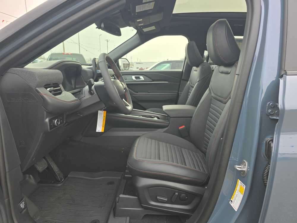 PANORAMIC FIXED GLASS ROOF W/POWER SHADE remote control front windows (opens front windows from outside of the vehicle via the key fob), ST-LINE STREET PACK Wheels: 21 Magnetite-Painted Aluminum, Tires: P275/45R21 AS BSW, Performance Brakes, Red Painted Perf Front & Rear Brake Calipers, PREMIUM PACKAGE 110V/150W AC Power Outlet, Replaces the powerpoint port on the rear side of the center floor console, Auto-Dimming Interior Rearview Mirror, Memory Drivers Seat, Manual-Folding Sideview Mirrors, power and heated glass, LED turn signal indicators, security approach lamps, drivers side auto-dimming and driver and passenger side memory, Rain-Sensing Wipers (Front Only), Ambient Lighting, 2nd Row Heated Seats, SECURICODE KEYLESS ENTRY KEYPAD, 18 SPARE WHEEL & JACK KIT 18 spare tire, FRONT & 2ND ROWS FLOOR LINERS W/CARPET FLOOR MATS front and 2nd rows black carpet floor mats, 2ND ROW CAPTAINS CHAIRS W/E-Z ENTRY & ARMREST E-Z Entry is manually activated, Replaces standard 2nd row 35/30/35 bench seats, TRANSMISSION: 10-SPEED AUTOMATIC (STD). 2026 Ford Explorer with Vapor Blue exterior and Onyx interior features a 4 Cylinder Engine with 300 HP at 5500 RPM*. Non-Smoker vehicle Superb Condition