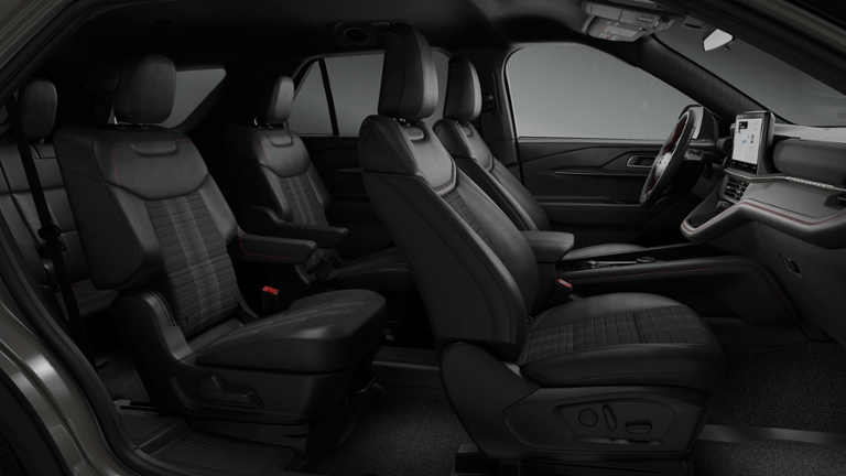 2026 Ford Explorer ST-Line Is nicely equipped with Equipment Group 300A Standard Package (Heated Unique Cloth Captain's Chairs, Radio: B&O Sound System by Bang and Olufsen, and Wheels: 20" Ebony-Painted Machined Aluminum), 4WD, 10 Speakers, 2nd Row Captain's Chairs w/E-Z Entry and Armrest, 3rd row seats: bench, 4-Wheel Disc Brakes, ABS brakes, Air Conditioning, Alloy wheels, AM/FM radio: SiriusXM with 360L, Apple CarPlay/Android Auto, Auto High-beam Headlights, Automatic temperature control, Brake assist, Bumpers: body-color, Compass, Delay-off headlights, Driver door bin, Driver vanity mirror, Dual front impact airbags, Dual front side impact airbags, Electronic Stability Control, Emergency communication system: 911 Assist, Exterior Parking Camera Rear, Four wheel independent suspension, Front and 2nd Rows Floor Liners with Carper Floor Mats, Front anti-roll bar, Front Bucket Seats, Front Center Armrest, Front dual zone A/C, Front fog lights, Front reading lights, Fully automatic headlights, Garage door transmitter, Heated door mirrors, Heated front seats, Heated steering wheel, Illuminated entry, Knee airbag, Leather steering wheel, Low tire pressure warning, Navigation System, Occupant sensing airbag, Outside temperature display, Overhead airbag, Overhead console, Panic alarm, Passenger door bin, Passenger vanity mirror, Power door mirrors, Power driver seat, Power Liftgate, Power passenger seat, Power steering, Power windows, Rear air conditioning, Rear anti-roll bar, Rear reading lights, Rear window defroster, Rear window wiper, Remote keyless entry, SecuriCode Keyless Entry Keypad, Security system, Speed control, Speed-sensing steering, Speed-Sensitive Wipers, Split folding rear seat, Spoiler, Steering wheel mounted audio controls, Tachometer, Telescoping steering wheel, Tilt steering wheel, Traction control, Trip computer, and Variably intermittent wipers. Factory MSRP: $50,400 Dealer Discount of $3,608 off MSRP Priced below KBB Fair Purchase Price!