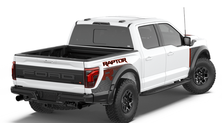Oxford White 2026 Ford F-150 Raptor 4WD 10-Speed Automatic 5.2L V8 4WD, 14 Speakers, 17 Cast Aluminum Wheels, 4-Wheel Disc Brakes, ABS brakes, Adjustable pedals, Air Conditioning, Alloy wheels, AM/FM radio: SiriusXM with 360L, Auto High-beam Headlights, Auto tilt-away steering wheel, Auto-dimming door mirrors, Auto-dimming Rear-View mirror, Automatic temperature control, Brake assist, Bumpers: body-color, Code Orange Front Tow Hooks, Code Orange Stitching Doors and Instrument Panel, Compass, Delay-off headlights, Driver door bin, Driver vanity mirror, Dual front impact airbags, Dual front side impact airbags, Dual Valve Shocks, Electronic Locking with 4.10 Axle Ratio, Electronic Stability Control, Emergency communication system: SYNC 4 911 Assist, Equipment Group 803A Raptor R, Ford Connectivity Package (1-Year Included), Front anti-roll bar, Front Bucket Seats, Front Center Armrest, Front dual zone A/C, Front fog lights, Front License Plate Bracket, Front reading lights, Front wheel independent suspension, Fully automatic headlights, Garage door transmitter, Heated door mirrors, Heated front seats, Heated rear seats, Heated steering wheel, Illuminated entry, Interior Code Orange Raptor R Badging, Internet access capable: 5G Modem - Ford Connectivity Package, Lane Departure Warning System, Leather steering wheel, Leather Trimmed Seats, Low tire pressure warning, Memory seat, Modular Front Bumper, Navigation system: Connected Navigation, Occupant sensing airbag, Outside temperature display, Overhead airbag, Overhead console, Panic alarm, Passenger door bin, Passenger vanity mirror, Pedal memory, Power door mirrors, Power driver seat, Power passenger seat, Power steering, Power windows, Radio data system, Radio: B&O Unleashed Sound System by Bang & Olufsen, Rain sensing wipers, Raptor R Badge Tailgate Applique, Raptor R Exterior Graphics, Raptor R Exterior Theme, Raptor R Interior Theme, Raptor R Unique Grille, Raptor R Unique Hood Vent with R Badge, Rear reading lights, Rear step bumper, Rear window defroster, RECARO with Code Orange Stitching Front Seats, Remote keyless entry, Removes 2KW Pro Power Onboard, Security system, Speed control, Speed-sensing steering, Split folding rear seat, Steering wheel memory, Steering wheel mounted audio controls, SYNC 4 with Enhanced Voice Recognition, Tachometer, Telescoping steering wheel, Tilt steering wheel, Tough Bed Spray-in Bedliner, Traction control, Trip computer, Turn signal indicator mirrors, Twin Panel Moonroof, Unique Carbon Fiber Appliques, Upgraded Dual Exhaust, Variably intermittent wipers, Ventilated front seats, Wheels: Raptor R Unique 17 Forged Aluminum, 4WD.