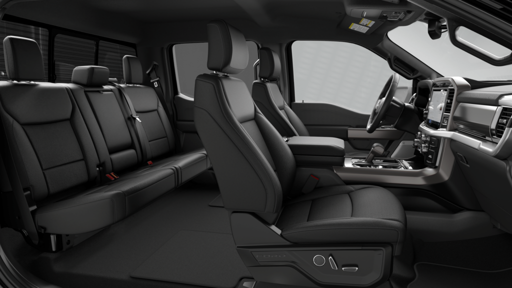 F-150 Lariat is nicely equipped with Equipment Group 502A High (2nd Row Heated Seats, 3.31 Axle Ratio, ActiveX Trimmed Bucket Seats, Ambient Lighting - Ice Blue Color Only, Illuminated Driver and Passenger Visors, Power-Adjustable Pedals with Memory, Power-Sliding Rear Window, Radio: B&O Unleashed Sound System by Bang & Olufsen, and Wheels: 20" Chrome-Like PVD), Ford Connectivity Package (1-Year Included), Internet access capable: 5G Modem - Ford Connectivity Package, Lariat Black Appearance Package (Black Exterior Badging, Black Grille, Black Taillamp Bezels, Body-Color Front and Rear Bumpers, Dark Interior Appliques, Gray Box Side Decal, and Matte Black Tailgate F-150 Decal), Mobile Office Package (Console Worksurface, Partitioned Lockable Rear Storage, and Wireless Charging), 4WD, 4-Wheel Disc Brakes, 8 Speakers, ABS brakes, Air Conditioning, Alloy wheels, AM/FM radio: SiriusXM with 360L, Auto High-beam Headlights, Auto-dimming door mirrors, Auto-dimming Rear-View mirror, Automatic temperature control, Brake assist, Bumpers: chrome, Chrome wheels, Compass, Delay-off headlights, Driver door bin, Driver vanity mirror, Dual front impact airbags, Dual front side impact airbags, Electronic Stability Control, Emergency communication system: SYNC 4 911 Assist, Front anti-roll bar, Front Bucket Seats, Front Center Armrest, Front dual zone A/C, Front fog lights, Front reading lights, Front wheel independent suspension, Fully automatic headlights, Garage door transmitter, Heated door mirrors, Heated front seats, Heated steering wheel, Illuminated entry, Low tire pressure warning, Memory seat, Navigation system: Connected Navigation, Occupant sensing airbag, Outside temperature display, Overhead airbag, Overhead console, Panic alarm, Passenger door bin, Passenger vanity mirror, Power door mirrors, Power driver seat, Power passenger seat, Power steering, Power windows, Radio data system, Radio: B&O Sound System by Bang and Olufsen, Rain sensing wipers, Rear reading lights, Rear seat center armrest, Rear step bumper, Rear window defroster, Remote keyless entry, Security system, Speed control, Split folding rear seat, Steering wheel mounted audio controls, SYNC 4 with Enhanced Voice Recognition, Tachometer, Telescoping steering wheel, Tilt steering wheel, Traction control, Trip computer, Turn signal indicator mirrors, Variably intermittent wipers, Ventilated front seats, and Wheels: 18" Chrome-Like PVD. See dealer for details. Price may include Ford Employee discount. Price does not include licensing costs, registration fees, taxes and dealer doc fee of $280, which are to be paid by the consumer.$1000 - Retail Customer Cash. Exp. 03/31/2026