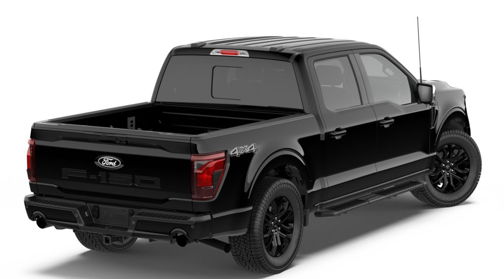 F-150 XLT is nicely equipped with Bed Utility Package (4 Pickup Box Tie-Down Plates, Bed Storage Boxes, LED Box Lighting, and Tailgate Step with Work Surface), Equipment Group 302A Mid (18" Painted Aluminum Wheels, 360 Degree Camera, 400W Pro Power Onboard (cab & Bed), Adaptive Cruise Control with Stop and Go, AEB Oncoming, Auto-Dimming Rear-View Mirror, Body-Color Door Handles, Cloth 40/20/40 Front Seat, Dual-Zone Electronic Automatic Temperature Control, Ford Co-Pilot360 Assist 2.0, Front Parking Sensors, Heated Front Seats, Intelligent Access with Push Button Start, Power Glass Heated Sideview Mirrors, Power-Sliding Rear Window, Radio: AM/FM Stereo with SiriusXM 360L, Remote Start System with Remote Tailgate Release, SYNC 4 with Enhanced Voice Recognition, Towing Technology, and Wrapped Steering Wheel), Ford Connectivity Package (1-Year Included), Ford Connectivity Package (one-Time Purchase - 7 Years), Internet access capable: 5G Modem - Ford Connectivity Package, Tow/Haul Package, XLT Black Appearance Package Plus (6" Black Running Boards, Black Exterior Badging, Black Grille, Body-Color Front and Rear Bumpers, Dark Interior Appliques, Dual Exhaust with Black Tips, Floor Shifter, Gray Box Side Decal, and Wheels: 20" Gloss Black Painted Aluminum), 4WD, 4-Wheel Disc Brakes, 6 Speakers, ABS brakes, Air Conditioning, Alloy wheels, AM/FM radio: SiriusXM with 360L, Auto High-beam Headlights, Black Platform Running Boards, Brake assist, Bumpers: body-color, Compass, Delay-off headlights, Driver door bin, Driver vanity mirror, Dual front impact airbags, Dual front side impact airbags, Electronic Stability Control, Emergency communication system: SYNC 4 911 Assist, Front anti-roll bar, Front Center Armrest, Front fog lights, Front reading lights, Front wheel independent suspension, Fully automatic headlights, Heated door mirrors, Illuminated entry, Low tire pressure warning, Occupant sensing airbag, Outside temperature display, Overhead airbag, Overhead console, Panic alarm, Passenger door bin, Passenger vanity mirror, Power door mirrors, Power steering, Power windows, Radio data system, Rear Parking Sensors, Rear reading lights, Rear step bumper, Rear window defroster, Remote keyless entry, Security system, Speed control, Split folding rear seat, Steering wheel mounted audio controls, Tachometer, Telescoping steering wheel, Tilt steering wheel, Traction control, Trip computer, and Variably intermittent wipers.