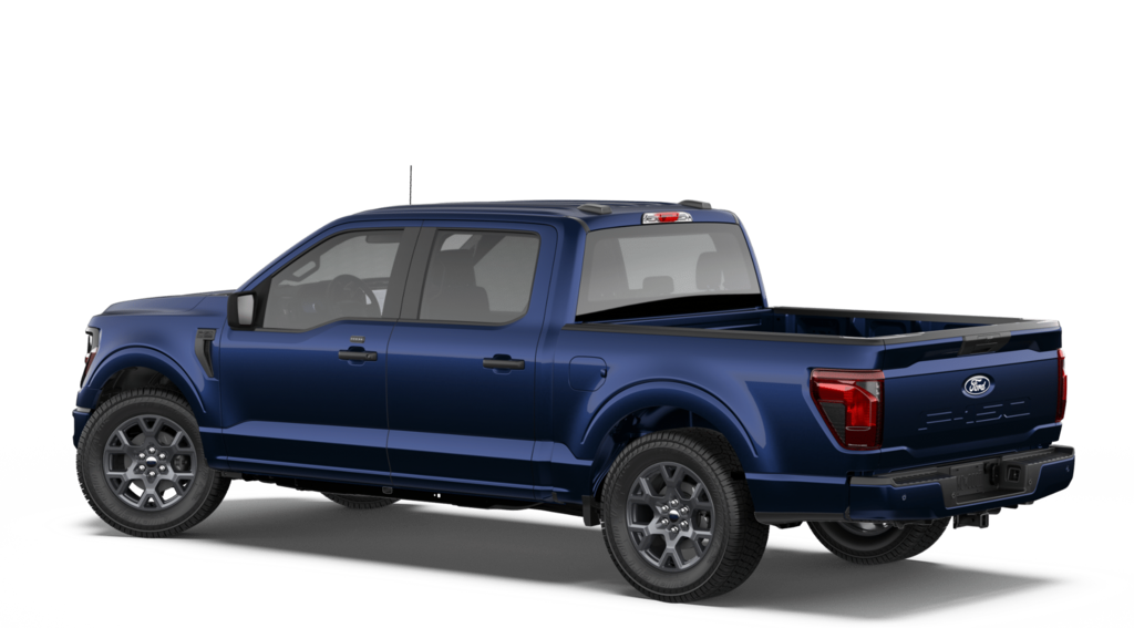 F-150 STX is nicely equipped with Equipment Group 200A Mid (12" Cluster Display, 3.55 Axle Ratio, LED Fog Lamps with LED Cornering Lamp, Radio: AM/FM Stereo with SiriusXM 360L, SYNC 4 with Enhanced Voice Recognition, Unique Sport Cloth 40/Console/40 Front-Seats, and Wheels: 20" Dark Gray Aluminum), Ford Connectivity Package (1-Year Included), GVWR: 6,650 lbs Payload Package, Internet access capable: 5G Modem - Ford Connectivity Package, 4WD, 4-Wheel Disc Brakes, 6 Speakers, ABS brakes, Air Conditioning, Alloy wheels, AM/FM radio: SiriusXM with 360L, Auto High-beam Headlights, Brake assist, Bumpers: body-color, Compass, Delay-off headlights, Driver door bin, Dual front impact airbags, Dual front side impact airbags, Electronic Stability Control, Emergency communication system: SYNC 4 911 Assist, Front anti-roll bar, Front Bucket Seats, Front Center Armrest, Front reading lights, Front wheel independent suspension, Fully automatic headlights, Heated door mirrors, Illuminated entry, Low tire pressure warning, Occupant sensing airbag, Outside temperature display, Overhead airbag, Overhead console, Panic alarm, Passenger door bin, Passenger vanity mirror, Power door mirrors, Power steering, Power windows, Radio data system, Rear Parking Sensors, Rear step bumper, Rear window defroster, Remote keyless entry, Security system, Speed control, Split folding rear seat, Steering wheel mounted audio controls, Tachometer, Telescoping steering wheel, Tilt steering wheel, Traction control, Trip computer, Variably intermittent wipers, and Wheels: 18" Gloss Black.