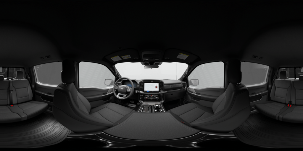 F-150 XLT is nicely equipped with Equipment Group 302A Mid (18" Painted Aluminum Wheels, 3.55 Axle Ratio, 360 Degree Camera, 400W Pro Power Onboard (cab & Bed), Adaptive Cruise Control with Stop and Go, AEB Oncoming, Auto-Dimming Rear-View Mirror, Body-Color Door Handles, Chrome Front and Rear Bumpers, Cloth 40/20/40 Front Seat, Dual-Zone Electronic Automatic Temperature Control, Ford Co-Pilot360 Assist 2.0, Front Parking Sensors, Heated Front Seats, Intelligent Access with Push Button Start, Power Glass Heated Sideview Mirrors, Power-Sliding Rear Window, Radio: AM/FM Stereo with SiriusXM 360L, Remote Start System with Remote Tailgate Release, SYNC 4 with Enhanced Voice Recognition, Towing Technology, and Wrapped Steering Wheel), Ford Connectivity Package (1-Year Included), GVWR: 6,650 lbs Payload Package, Internet access capable: 5G Modem - Ford Connectivity Package, XLT Black Appearance Package (6" Black Running Boards, Black Exterior Badging, Black Grille, Body-Color Front and Rear Bumpers, Dark Interior Appliques, Floor Shifter, Gray Box Side Decal, Unique Sport Cloth 40/Console/40 Front-Seats, and Wheels: 18" Gloss Black), 4WD, 4-Wheel Disc Brakes, 6 Speakers, ABS brakes, Air Conditioning, Alloy wheels, AM/FM radio: SiriusXM with 360L, Auto High-beam Headlights, Brake assist, Bumpers: body-color, Compass, Delay-off headlights, Driver door bin, Driver vanity mirror, Dual front impact airbags, Dual front side impact airbags, Electronic Stability Control, Emergency communication system: SYNC 4 911 Assist, Front anti-roll bar, Front Center Armrest, Front fog lights, Front reading lights, Front wheel independent suspension, Fully automatic headlights, Heated door mirrors, Illuminated entry, Low tire pressure warning, Occupant sensing airbag, Outside temperature display, Overhead airbag, Overhead console, Panic alarm, Passenger door bin, Passenger vanity mirror, Power door mirrors, Power steering, Power windows, Radio data system, Rear Parking Sensors, Rear reading lights, Rear step bumper, Rear window defroster, Remote keyless entry, Security system, Speed control, Split folding rear seat, Steering wheel mounted audio controls, Tachometer, Telescoping steering wheel, Tilt steering wheel, Traction control, Tray Style Floor Liner with Carpet Mats, Trip computer, and Variably intermittent wipers.