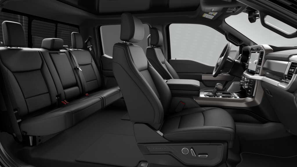 F-150 Lariat is nicely equipped with Bed Utility Package (4 Pickup Box Tie-Down Plates, Bed Storage Boxes, LED Box Lighting, and Tailgate Step with Work Surface), Equipment Group 502A High (2nd Row Heated Seats, ActiveX Trimmed Bucket Seats, Ambient Lighting - Ice Blue Color Only, Head-Up Display, Illuminated Driver and Passenger Visors, Power-Adjustable Pedals with Memory, Power-Sliding Rear Window, Radio: B&O Unleashed Sound System by Bang & Olufsen, and Wheels: 20" Chrome-Like PVD), Ford Connectivity Package (1-Year Included), Internet access capable: 5G Modem - Ford Connectivity Package, Lariat Black Appearance Package (Black Exterior Badging, Black Grille, Black Taillamp Bezels, Body-Color Front and Rear Bumpers, Dark Interior Appliques, Gray Box Side Decal, and Matte Black Tailgate F-150 Decal), Mobile Office Package (Console Worksurface, Partitioned Lockable Rear Storage, and Wireless Charging), Tow/Haul Package (Integrated Trailer Brake Controller), 4WD, 4-Wheel Disc Brakes, 8 Speakers, ABS brakes, Air Conditioning, Alloy wheels, AM/FM radio: SiriusXM with 360L, Auto High-beam Headlights, Auto-dimming door mirrors, Auto-dimming Rear-View mirror, Automatic temperature control, Brake assist, Bumpers: chrome, Chrome wheels, Compass, Delay-off headlights, Driver door bin, Driver vanity mirror, Driver's Side SecuriCode Keyless-Entry Keypad, Dual front impact airbags, Dual front side impact airbags, Electronic Stability Control, Emergency communication system: SYNC 4 911 Assist, Front anti-roll bar, Front Bucket Seats, Front Center Armrest, Front dual zone A/C, Front fog lights, Front reading lights, Front wheel independent suspension, Fully automatic headlights, Garage door transmitter, Heated door mirrors, Heated front seats, Heated steering wheel, Illuminated entry, Low tire pressure warning, Memory seat, Navigation system: Connected Navigation, Occupant sensing airbag, Outside temperature display, Overhead airbag, Overhead console, Panic alarm, Passenger door bin, Passenger vanity mirror, Power door mirrors, Power driver seat, Power passenger seat, Power steering, Power windows, Radio data system, Radio: B&O Sound System by Bang and Olufsen, Rain sensing wipers, Rear reading lights, Rear seat center armrest, Rear step bumper, Rear window defroster, Remote keyless entry, Security system, Speed control, Split folding rear seat, Steering wheel mounted audio controls, SYNC 4 with Enhanced Voice Recognition, Tachometer, Telescoping steering wheel, Tilt steering wheel, Traction control, Trip computer, Turn signal indicator mirrors, Twin Panel Moonroof, Variably intermittent wipers, Ventilated front seats, and Wheels: 18" Chrome-Like PVD. See dealer for details. Price may include Ford Employee discount. Price does not include licensing costs, registration fees, taxes and dealer doc fee of $280, which are to be paid by the consumer.$2000 - Retail Customer Cash. Exp. 03/31/2026