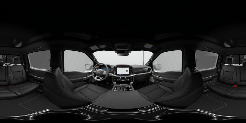 F-150 Lariat is nicely equipped with Bed Utility Package (4 Pickup Box Tie-Down Plates, Bed Storage Boxes, LED Box Lighting, and Tailgate Step with Work Surface), Equipment Group 502A High (2nd Row Heated Seats, 3.31 Axle Ratio, ActiveX Trimmed Bucket Seats, Ambient Lighting - Ice Blue Color Only, Head-Up Display, Illuminated Driver and Passenger Visors, Power-Adjustable Pedals with Memory, Power-Sliding Rear Window, Radio: B&O Unleashed Sound System by Bang & Olufsen, and Wheels: 20" Chrome-Like PVD), Ford Connectivity Package (1-Year Included), Internet access capable: 5G Modem - Ford Connectivity Package, Lariat Black Appearance Package (Black Exterior Badging, Black Grille, Black Taillamp Bezels, Body-Color Front and Rear Bumpers, Dark Interior Appliques, Gray Box Side Decal, and Matte Black Tailgate F-150 Decal), Mobile Office Package (Console Worksurface, Partitioned Lockable Rear Storage, and Wireless Charging), 4WD, 4-Wheel Disc Brakes, 8 Speakers, ABS brakes, Air Conditioning, Alloy wheels, AM/FM radio: SiriusXM with 360L, Auto High-beam Headlights, Auto-dimming door mirrors, Auto-dimming Rear-View mirror, Automatic temperature control, Brake assist, Bumpers: chrome, Chrome wheels, Compass, Delay-off headlights, Driver door bin, Driver vanity mirror, Driver's Side SecuriCode Keyless-Entry Keypad, Dual front impact airbags, Dual front side impact airbags, Electronic Stability Control, Emergency communication system: SYNC 4 911 Assist, Front anti-roll bar, Front Bucket Seats, Front Center Armrest, Front dual zone A/C, Front fog lights, Front reading lights, Front wheel independent suspension, Fully automatic headlights, Garage door transmitter, Heated door mirrors, Heated front seats, Heated steering wheel, Illuminated entry, Low tire pressure warning, Memory seat, Navigation system: Connected Navigation, Occupant sensing airbag, Outside temperature display, Overhead airbag, Overhead console, Panic alarm, Passenger door bin, Passenger vanity mirror, Power door mirrors, Power driver seat, Power passenger seat, Power steering, Power windows, Radio data system, Radio: B&O Sound System by Bang and Olufsen, Rain sensing wipers, Rear reading lights, Rear seat center armrest, Rear step bumper, Rear window defroster, Remote keyless entry, Security system, Speed control, Split folding rear seat, Steering wheel mounted audio controls, SYNC 4 with Enhanced Voice Recognition, Tachometer, Telescoping steering wheel, Tilt steering wheel, Traction control, Trip computer, Turn signal indicator mirrors, Twin Panel Moonroof, Variably intermittent wipers, Ventilated front seats, and Wheels: 18" Chrome-Like PVD.