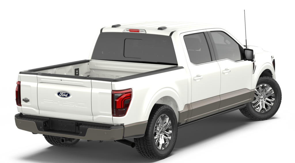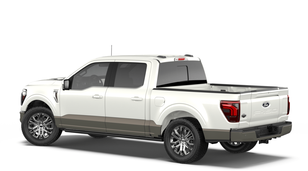 F-150 King Ranch is nicely equipped with Equipment Group 601A High (Electronic Locking with 3.55 Axle Ratio, King Ranch Multicontour Leather Bucket Seats, Power-Deployable Running Boards, Radio: B&O Unleashed Sound System by Bang & Olufsen, and Wheels: 20" Chrome-Like PVD), Ford Connectivity Package (1-Year Included), Internet access capable: 5G Modem - Ford Connectivity Package, 4WD, 4-Wheel Disc Brakes, 8 Speakers, ABS brakes, Adjustable pedals, Air Conditioning, Alloy wheels, AM/FM radio: SiriusXM with 360L, Auto High-beam Headlights, Auto tilt-away steering wheel, Auto-dimming door mirrors, Auto-dimming Rear-View mirror, Automatic temperature control, Brake assist, Chrome wheels, Compass, Delay-off headlights, Driver door bin, Driver vanity mirror, Dual front impact airbags, Dual front side impact airbags, Electronic Stability Control, Emergency communication system: SYNC 4 911 Assist, Front anti-roll bar, Front Bucket Seats, Front Center Armrest, Front dual zone A/C, Front fog lights, Front reading lights, Front wheel independent suspension, Fully automatic headlights, Garage door transmitter, Genuine wood dashboard insert, Heated door mirrors, Heated front seats, Heated rear seats, Heated steering wheel, Illuminated entry, Leather steering wheel, Low tire pressure warning, Memory seat, Navigation system: Connected Navigation, Occupant sensing airbag, Outside temperature display, Overhead airbag, Overhead console, Panic alarm, Passenger door bin, Passenger vanity mirror, Pedal memory, Power door mirrors, Power driver seat, Power passenger seat, Power steering, Power windows, Pro Access Tailgate, Radio data system, Radio: B&O Sound System by Bang and Olufsen, Rain sensing wipers, Rear reading lights, Rear seat center armrest, Rear step bumper, Rear window defroster, Remote keyless entry, Security system, Speed control, Split folding rear seat, Steering wheel memory, Steering wheel mounted audio controls, SYNC 4 with Enhanced Voice Recognition, Tachometer, Telescoping steering wheel, Tilt steering wheel, Traction control, Trip computer, Turn signal indicator mirrors, Variably intermittent wipers, and Ventilated front seats.