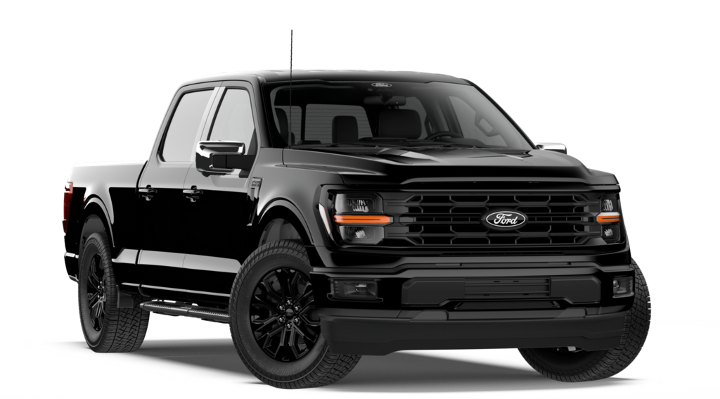 F-150 XLT is nicely equipped with Bed Utility Package (4 Pickup Box Tie-Down Plates, Bed Storage Boxes, LED Box Lighting, and Tailgate Step with Work Surface), Equipment Group 302A Mid (18" Painted Aluminum Wheels, 360 Degree Camera, 400W Pro Power Onboard (cab & Bed), Adaptive Cruise Control with Stop and Go, AEB Oncoming, Auto-Dimming Rear-View Mirror, Body-Color Door Handles, Cloth 40/20/40 Front Seat, Dual-Zone Electronic Automatic Temperature Control, Ford Co-Pilot360 Assist 2.0, Front Parking Sensors, Heated Front Seats, Intelligent Access with Push Button Start, Power Glass Heated Sideview Mirrors, Power-Sliding Rear Window, Radio: AM/FM Stereo with SiriusXM 360L, Remote Start System with Remote Tailgate Release, SYNC 4 with Enhanced Voice Recognition, Towing Technology, and Wrapped Steering Wheel), Ford Connectivity Package (1-Year Included), Ford Connectivity Package (one-Time Purchase - 7 Years), FX4 Off-Road Package, Internet access capable: 5G Modem - Ford Connectivity Package, Tow/Haul Package, XLT Black Appearance Package Plus (6" Black Running Boards, Black Exterior Badging, Black Grille, Body-Color Front and Rear Bumpers, Dark Interior Appliques, Dual Exhaust with Black Tips, Floor Shifter, Gray Box Side Decal, and Wheels: 20" Gloss Black Painted Aluminum), 4WD, 4-Wheel Disc Brakes, 6 Speakers, ABS brakes, Air Conditioning, Alloy wheels, AM/FM radio: SiriusXM with 360L, Auto High-beam Headlights, Black Platform Running Boards, Brake assist, Bumpers: body-color, Compass, Delay-off headlights, Driver door bin, Driver vanity mirror, Dual front impact airbags, Dual front side impact airbags, Electronic Stability Control, Emergency communication system: SYNC 4 911 Assist, Front anti-roll bar, Front Center Armrest, Front fog lights, Front reading lights, Front wheel independent suspension, Fully automatic headlights, Heated door mirrors, Illuminated entry, Low tire pressure warning, Occupant sensing airbag, Outside temperature display, Overhead airbag, Overhead console, Panic alarm, Passenger door bin, Passenger vanity mirror, Power door mirrors, Power steering, Power windows, Radio data system, Rear Parking Sensors, Rear reading lights, Rear step bumper, Rear window defroster, Remote keyless entry, Security system, Speed control, Split folding rear seat, Steering wheel mounted audio controls, Tachometer, Telescoping steering wheel, Tilt steering wheel, Traction control, Trip computer, and Variably intermittent wipers.