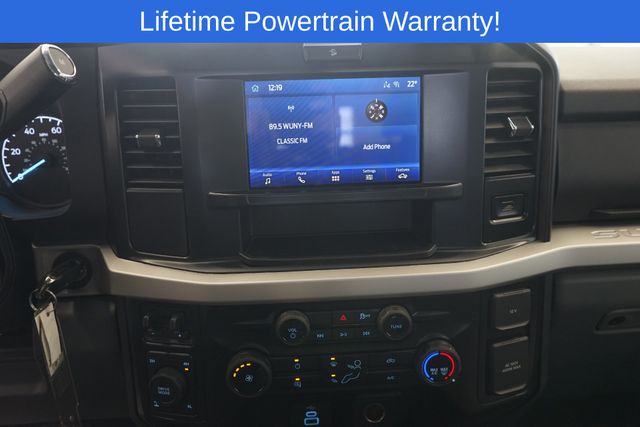 F-250 SuperDuty XLT is nicely equipped with GVWR: 10,000 lb Payload Package, Internet access capable: 5G Modem - Ford Connectivity Package, 3.73 Axle Ratio, 4-Wheel Disc Brakes, 6 Speakers, ABS brakes, Air Conditioning, Alloy wheels, AM/FM radio, AM/FM Stereo w/MP3 Player, Auto High-beam Headlights, Brake assist, Bumpers: chrome, Cloth 40/20/40 Split Bench Seat, Compass, Delay-off headlights, Driver door bin, Driver vanity mirror, Dual front impact airbags, Dual front side impact airbags, Electronic Stability Control, Emergency communication system: SYNC 4 911 Assist, Exterior Parking Camera Rear, Front anti-roll bar, Front Center Armrest w/Storage, Front fog lights, Front reading lights, Fully automatic headlights, Heated door mirrors, Illuminated entry, Low tire pressure warning, Outside temperature display, Overhead airbag, Overhead console, Panic alarm, Passenger door bin, Passenger vanity mirror, Power door mirrors, Power driver seat, Power steering, Power windows, Privacy Glass, Rear reading lights, Rear step bumper, Remote keyless entry, Security system, Speed control, Split folding rear seat, Steering wheel mounted audio controls, SYNC 4, Tachometer, Telescoping steering wheel, Tilt steering wheel, Traction control, Trip computer, Turn signal indicator mirrors, Variably intermittent wipers, and Wheels: 18" Sparkle Silver Painted Cast Aluminum.