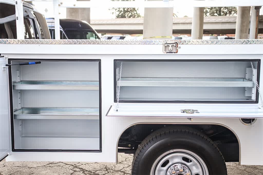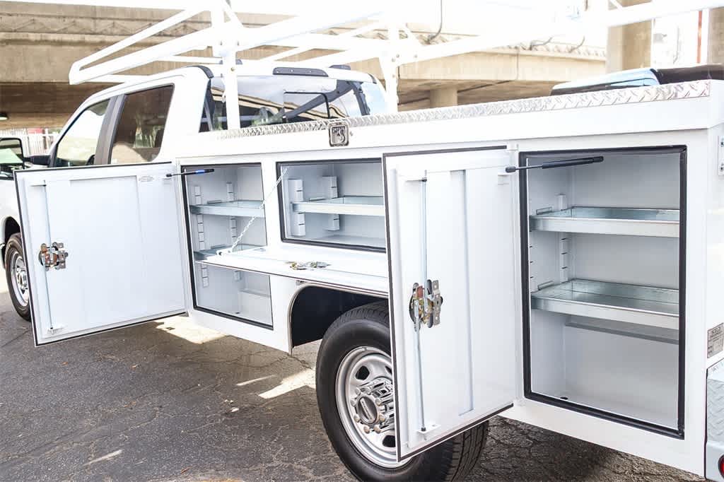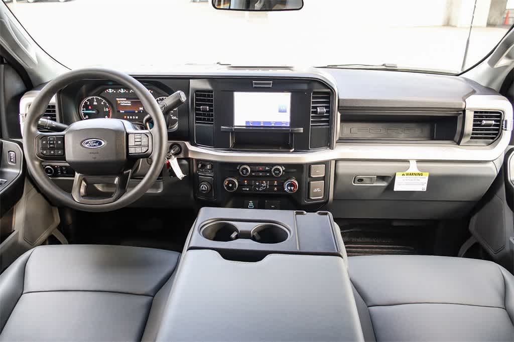 Oxford White 2026 Ford F-350 Super Duty Scelzi 9 Utility Body DRW Gas XL RWD 10-Speed Automatic 7.3L V8 PFI OHV 16V Federal 335hp 3-Ton Mechanical Jack, 4-Wheel Disc Brakes, 410 Amp Dual Alternators, 6 Speakers, ABS brakes, Air Conditioning, AM/FM radio, AM/FM Stereo w/MP3 Player, Brake assist, Cloth 40/20/40 Split Bench Seat, Compass, Delay-off headlights, Dual front impact airbags, Dual front side impact airbags, Electronic Stability Control, Electronic-Locking w/4.30 Axle Ratio, Emergency communication system: SYNC 4 911 Assist, Ford Connectivity Package (1-Year Included), Front anti-roll bar, Front Center Armrest w/Storage, Front License Plate Bracket, Front reading lights, Front wheel independent suspension, Fully automatic headlights, GVWR: 11,000 lb Payload Package, Heated door mirrors, Illuminated entry, Internet access capable: 5G Modem - Ford Connectivity Package, Low tire pressure warning, Outside temperature display, Overhead airbag, Overhead console, Panic alarm, Passenger vanity mirror, Power door mirrors, Power steering, Power windows, Rear anti-roll bar, Rear reading lights, Rear View Camera & Prep Kit, Remote keyless entry, Security system, Speed control, Split folding rear seat, Steering wheel mounted audio controls, SYNC 4 Communication & Entertainment System, Tachometer, Telescoping steering wheel, Tilt steering wheel, Traction control, Trip computer, Turn signal indicator mirrors, Variably intermittent wipers.