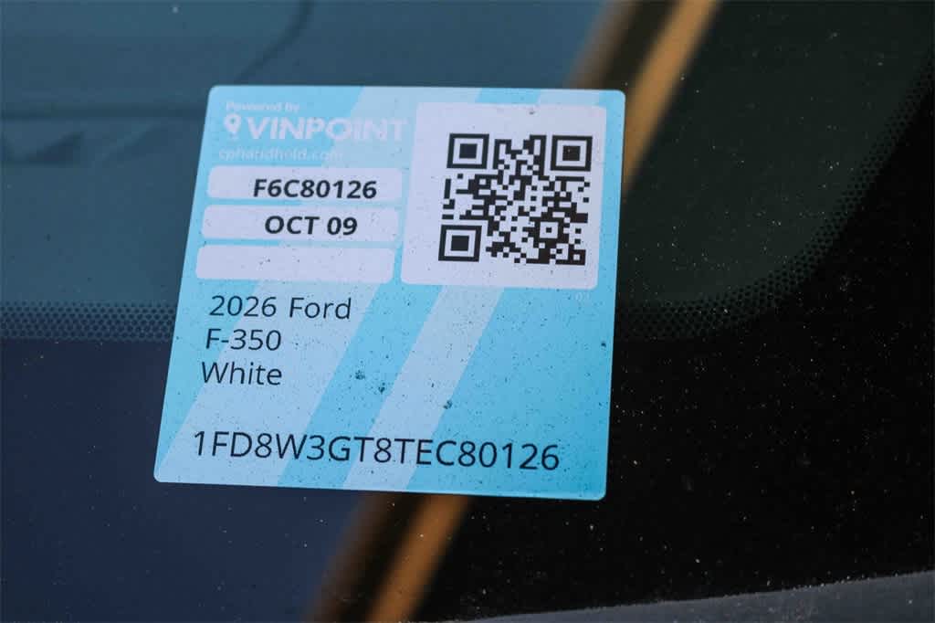 Oxford White 2026 Ford F-350 Super Duty Scelzi 9 Utility Body XL DRW Diesel RWD 10-Speed Automatic Power Stroke 6.7L V8 DI 32V OHV Turbodiesel 17 Argent Painted Steel Wheels, 3.73 Axle Ratio, 350 Amp Dual Alternators, 4-Ton Hydraulic Jack, 4-Wheel Disc Brakes, 6 Speakers, ABS brakes, Air Conditioning, AM/FM radio, AM/FM Stereo w/MP3 Player, Brake assist, Cloth 40/20/40 Split Bench Seat, Compass, Delay-off headlights, Dual front impact airbags, Dual front side impact airbags, Dual rear wheels, Emergency communication system: SYNC 4 911 Assist, Ford Connectivity Package (1-Year Included), Front anti-roll bar, Front Center Armrest w/Storage, Front License Plate Bracket, Front reading lights, Front wheel independent suspension, Fully automatic headlights, GVWR: 14,000 lb Payload Package, Heated door mirrors, Illuminated entry, Internet access capable: 5G Modem - Ford Connectivity Package, Low tire pressure warning, Outside temperature display, Overhead airbag, Overhead console, Panic alarm, Passenger vanity mirror, Power door mirrors, Power steering, Power windows, Rear anti-roll bar, Rear reading lights, Rear View Camera & Prep Kit, Remote keyless entry, Security system, Speed control, Split folding rear seat, Steering wheel mounted audio controls, SYNC 4 Communication & Entertainment System, Tachometer, Telescoping steering wheel, Tilt steering wheel, Traction control, Trip computer, Turn signal indicator mirrors, Variably intermittent wipers.