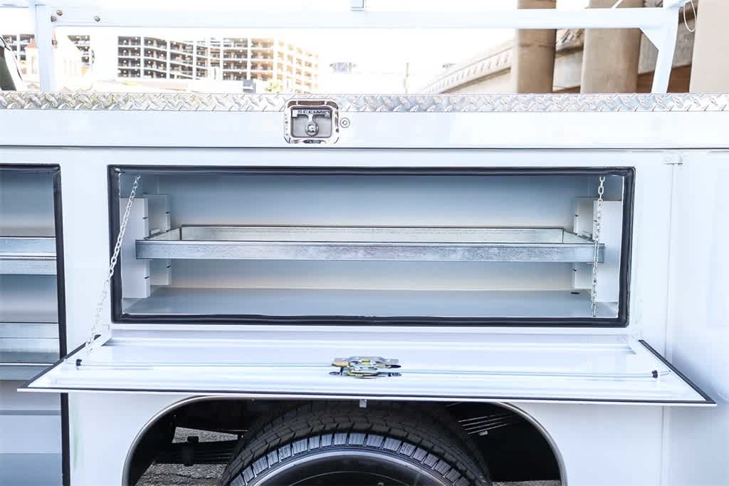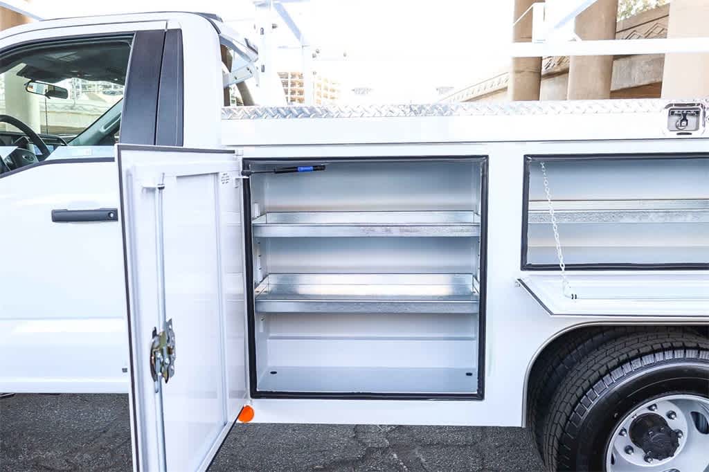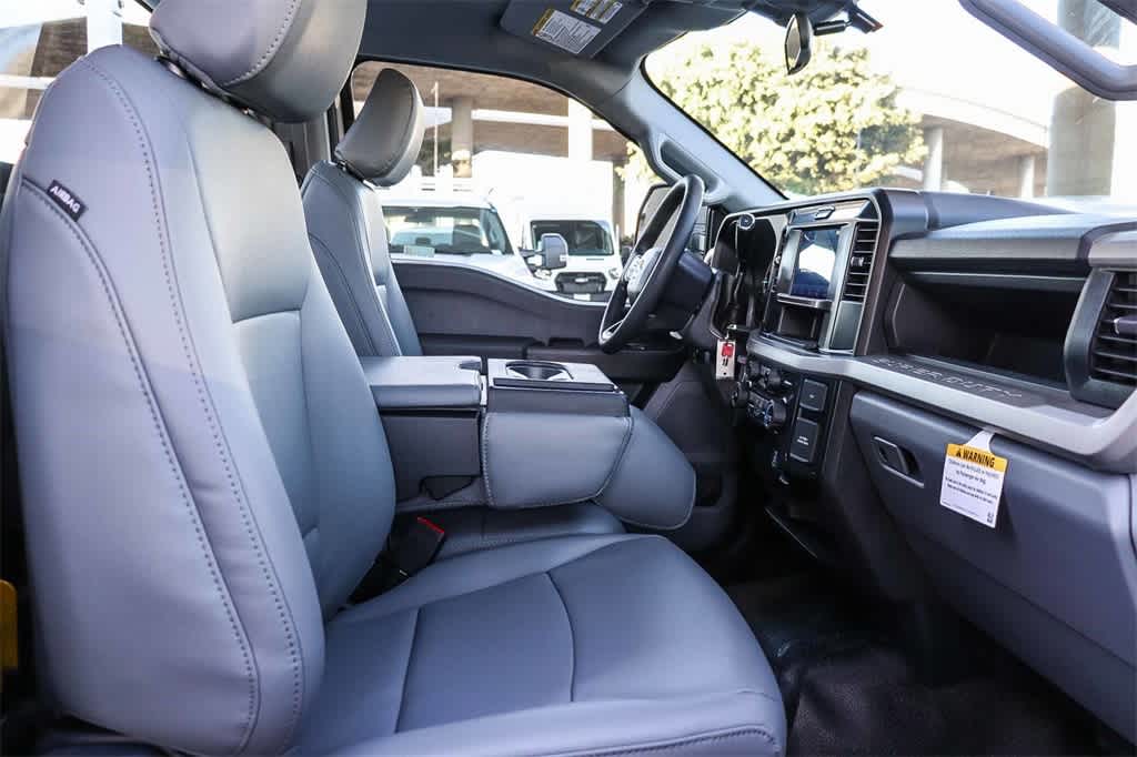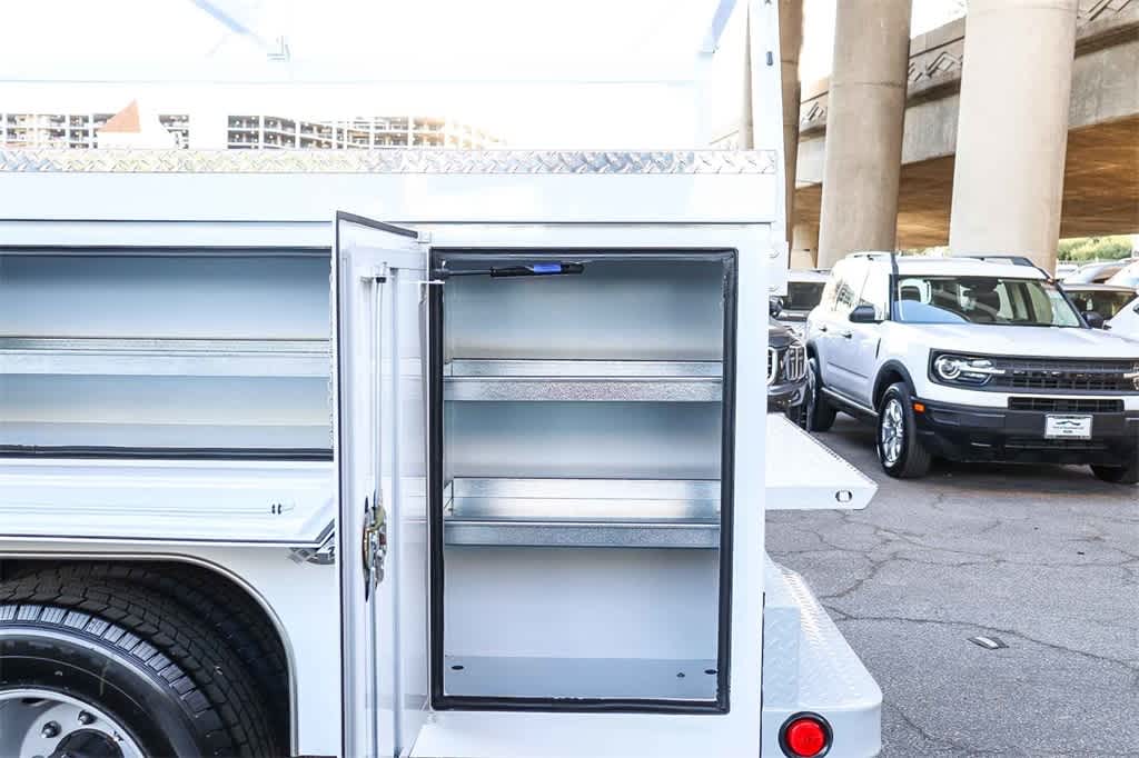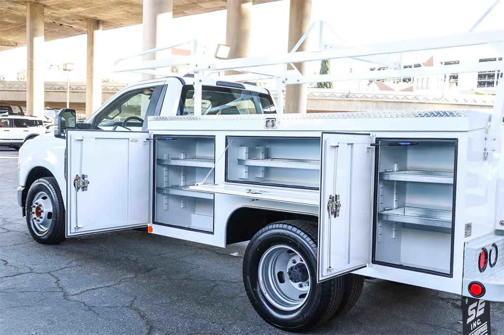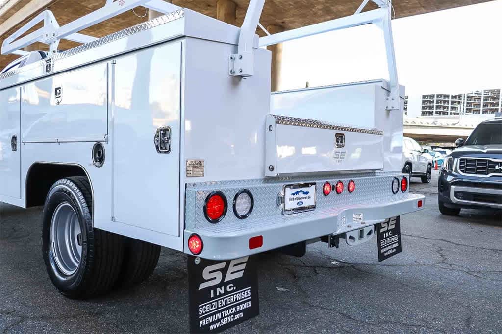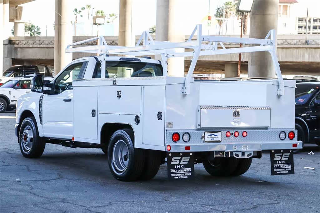 Oxford White 2026 Ford F-350 Super Duty Scelzi 9 Utility Body DRW Gas XL DRW RWD 10-Speed Automatic 7.3L V8 PFI OHV 16V Federal 335hp 17 Argent Painted Steel Wheels, 190 Amp Alternator, 3.73 Axle Ratio, 4 Speakers, 4-Ton Hydraulic Jack, 4-Wheel Disc Brakes, 410 Amp Dual Alternators, ABS brakes, Air Conditioning, AM/FM radio, AM/FM Stereo w/MP3 Player, Brake assist, Bright Grille, Chrome Front Bumper, Compass, Delay-off headlights, Dual 68 AH/65 AGM Battery, Dual front impact airbags, Dual front side impact airbags, Dual rear wheels, Emergency communication system: SYNC 4 911 Assist, Ford Connectivity Package (1-Year Included), Front anti-roll bar, Front Center Armrest w/Storage, Front License Plate Bracket, Front reading lights, Front wheel independent suspension, Fully automatic headlights, GVWR: 14,000 lb Payload Package, Halogen Fog Lamps, HD Vinyl 40/20/40 Split Bench Seat, Heated door mirrors, Illuminated entry, Internet access capable: 5G Modem - Ford Connectivity Package, Low tire pressure warning, Order Code 640A, Outside temperature display, Overhead airbag, Overhead console, Panic alarm, Passenger cancellable airbag, Passenger vanity mirror, Power door mirrors, Power steering, Power windows, Pro Power Onboard - 400W Outlet, Rear anti-roll bar, Rear View Camera & Prep Kit, Remote keyless entry, Remote Start, Security system, Speed control, Steering wheel mounted audio controls, SYNC 4 Communication & Entertainment System, Tachometer, Telescoping steering wheel, Tilt steering wheel, Traction control, Trailer Brake Controller, Trip computer, Turn signal indicator mirrors, Variably intermittent wipers, XL Chrome Package.