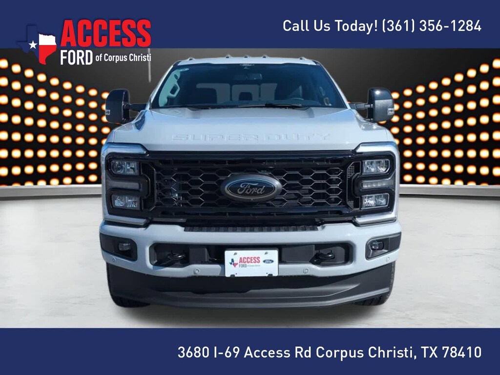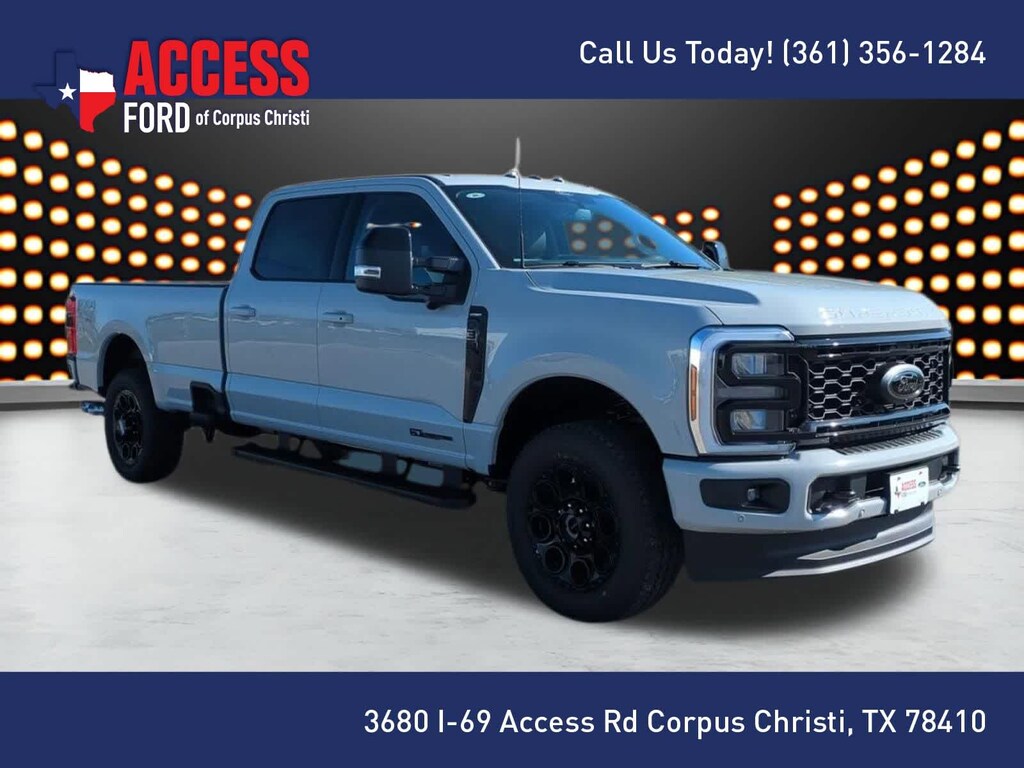 BLACK APPEARANCE PACKAGE front and rear black Ford ovals, box side decal (4x4, FX4 or Tremor) and ebony black fender vent surround dark fender badge, Rear Wheel Well Liners (Pre-Installed), Black Painted Front Grille Surround, Ebony Black Painted Mirror Caps, Tough Bed Spray-In Bedliner, tailgate-guard, black box bed tie-down hooks and black bed attachment bolts, Body Color Front & Rear Bumpers, Wheels: 20 Ebony Black High Gloss, Black premium painted aluminum, gloss black hub cover/center ornament, Tires: LT275/65Rx20E BSW Automatic Transmission (4), Spare may not be the same as road tire, 6 Ebony Black Angular Running Boards, LARIAT PREMIUM PACKAGE Pro Trailer Hitch Assist, Ford Co-Pilot 360 Assist 2.0, rear view camera and reverse brake assist, Pre-Collision Assist, Automatic Emergency Braking (AEB), pedestrian detection, forward collision warning, dynamic brake support and intersection assist, Post-Collision Braking, Lane-Keeping System, lane-keeping alert, lane-keeping aid and driver alert, Front & Rear Parking Sensors, Automatic High Beam, Adaptive Cruise Control w/Stop-and-Go, lane centering and predictive speed assist, Power-Sliding Rear-Window w/Defrost, Pro Trailer Backup Assist, trailer reverse guidance, Lane Departure Warning, TWIN PANEL POWER MOONROOF map lights and moonroof switches, SECURICODE KEYLESS ENTRY KEYPAD (DRIVERS SIDE) Integrated into the B-pillar, ELECTRONIC-LOCKING W/3.31 AXLE RATIO, TAILGATE STEP & HANDLE, TRANSMISSION: TORQSHIFT 10-SPEED AUTOMATIC SelectShift and selectable drive modes: normal, eco, slippery roads, tow/haul and off-road. 2026 Ford Super Duty F-350 SRW Pickup with Avalanche Gray exterior and Black Onyx interior features a 8 Cylinder Engine with 405 HP at 5000 RPM*.