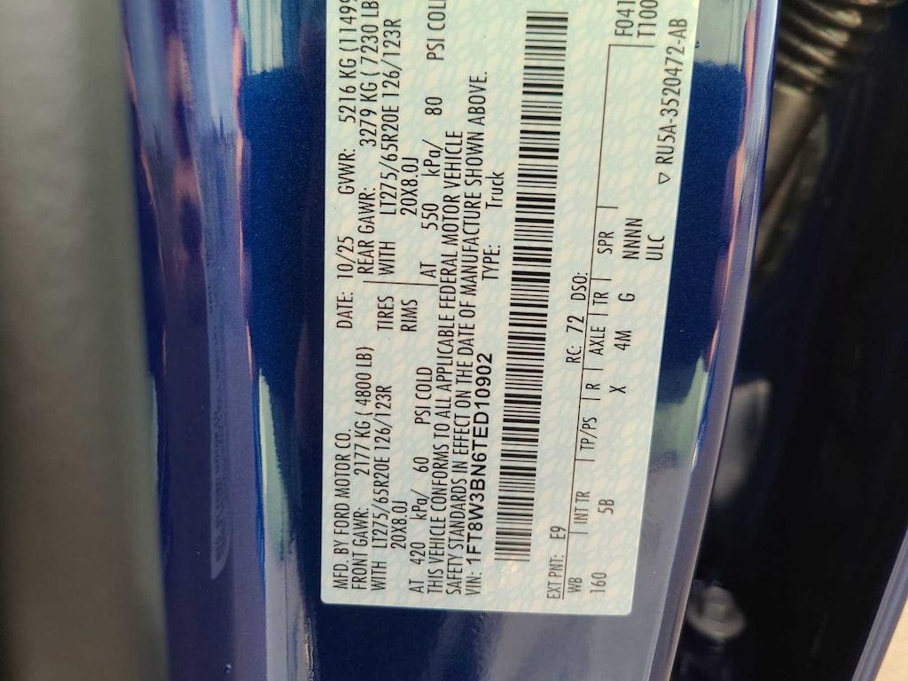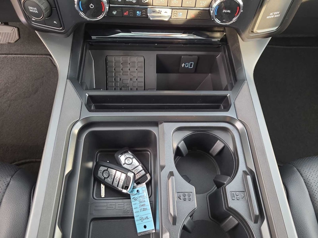 BLACK APPEARANCE PACKAGE front and rear black Ford ovals, box side decal (4x4, FX4 or Tremor) and ebony black fender vent surround dark fender badge, Rear Wheel Well Liners (Pre-Installed), Black Painted Front Grille Surround, Ebony Black Painted Mirror Caps, Tough Bed Spray-In Bedliner, tailgate-guard, black box bed tie-down hooks and black bed attachment bolts, Body Color Front & Rear Bumpers, Wheels: 20 Ebony Black High Gloss, Black premium painted aluminum, gloss black hub cover/center ornament, Tires: LT275/65Rx20E BSW Automatic Transmission (4), Spare may not be the same as road tire, 6 Ebony Black Angular Running Boards, ENGINE: 7.3L 2V DEVCT NA PFI V8 GAS GVWR: 11,100 lb Payload Package, Electronic-Locking w/3.73 Axle Ratio, POWER-SLIDING REAR-WINDOW W/DEFROST, TRANSMISSION: TORQSHIFT 10-SPEED AUTOMATIC SelectShift and selectable drive modes: normal, eco, slippery roads, tow/haul and off-road. MP3 Player, Privacy Glass.