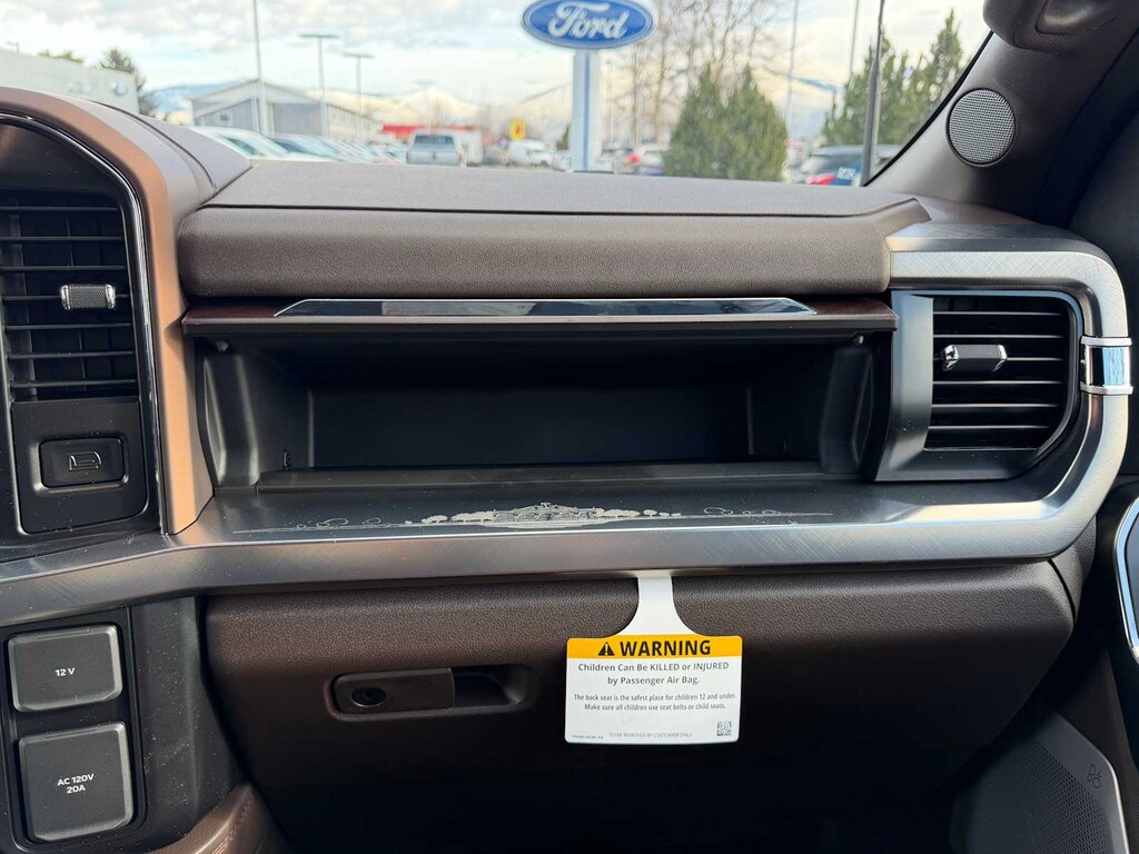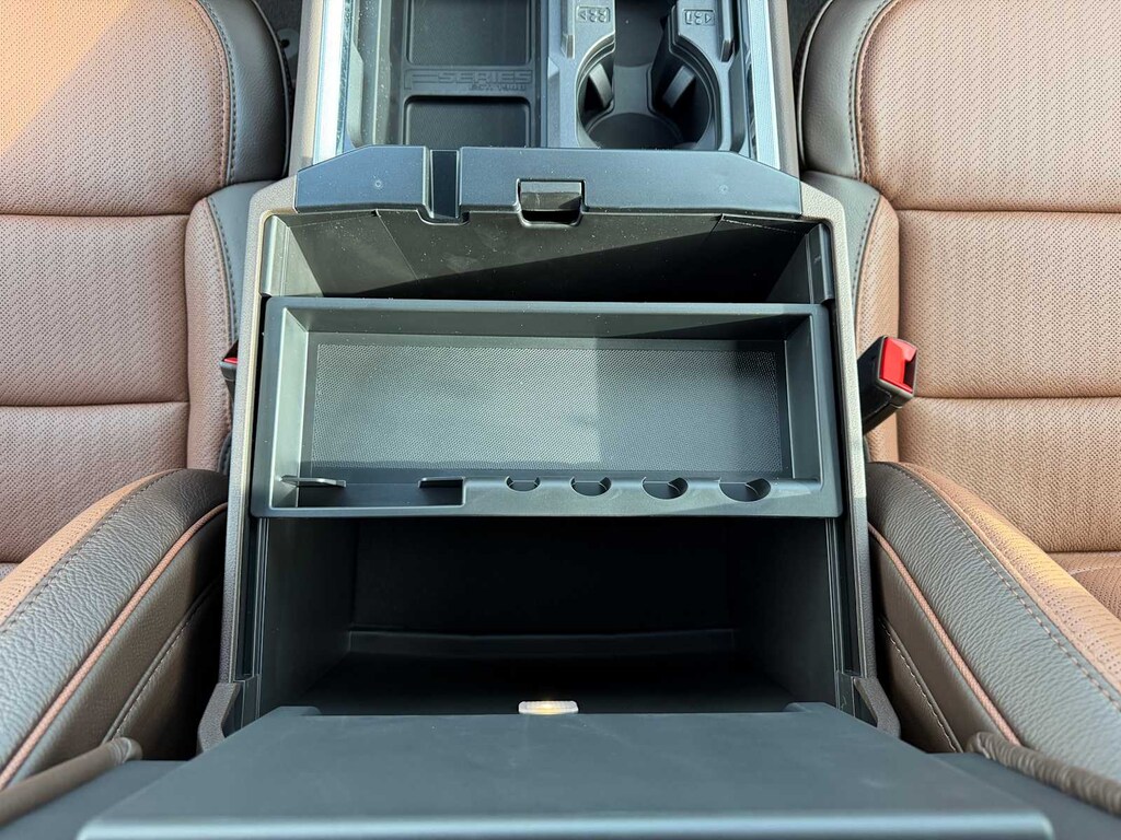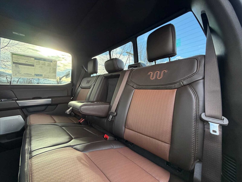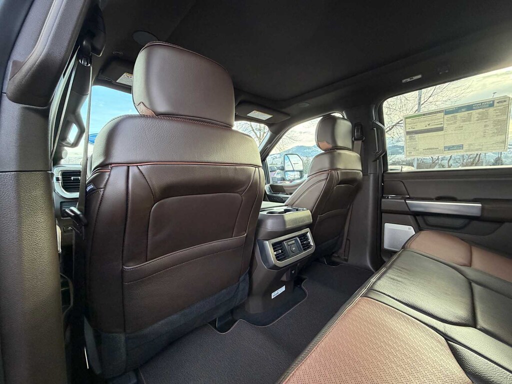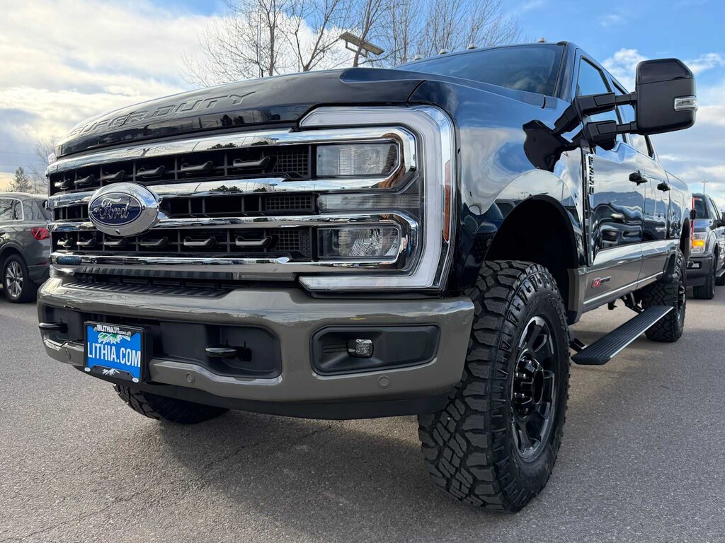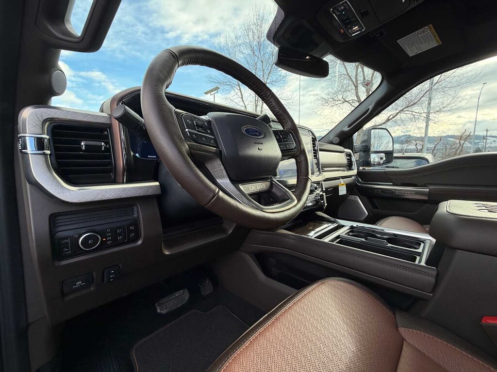 ENGINE: 6.7L HIGH OUTPUT POWER STROKE V8 DIESEL Turbo diesel B20, manual push-button engine-exhaust braking and Operator Commanded Regeneration (OCR), 250 Amp Alternator, 34 Gallon Fuel Tank, GVWR: 12,000 lb Payload Package, 3.31 Axle Ratio, Dual 68 AH AGM 750 CCA Batteries, TREMOR OFF-ROAD PACKAGE unique front springs - ride height increase, rear electronic locking differential, front limited slip differential, performance front and rear shock absorbers, unique front air dams w/approach angle improvement, transfer case and axle water fording vent tubes, rock crawl mode, trail control mode and trail turn assist, Tremor Off-Road Decal, Transfer Case & Fuel Tank Skid Plates, Tires: LT285/75R18E BSW Automatic Transmission, Off-road, LT285/75R18E BSW Spare Tire, Textured Matte Finish Off-Road Running Boards, Conventional Road Spare Wheel, Wheels: 18 Ebony Black Machined & Painted Aluminum, TWIN PANEL POWER MOONROOF map lights and moonroof switches, TRANSMISSION: TORQSHIFT 10-SPEED AUTOMATIC SelectShift and selectable drive modes: normal, eco, slippery roads, tow/haul and off-road (STD). Ford King Ranch with Agate Black/Marsh Gray exterior and Java interior features a 8 Cylinder Engine with 500 HP at 2600 RPM*.