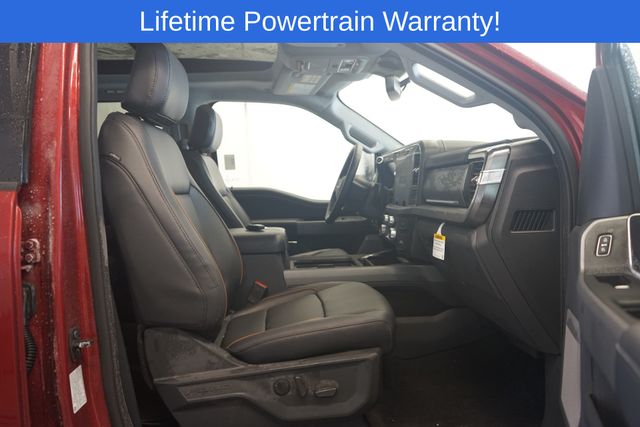 F-350 SuperDuty Lariat is nicely equipped with Ford Connectivity Package (1-Year Included), Internet access capable: 5G Modem - Ford Connectivity Package, 190 Amp Alternator, 3.73 Axle Ratio, 4-Wheel Disc Brakes, 8 Speakers, ABS brakes, Adjustable pedals, Air Conditioning, Alloy wheels, AM/FM radio: SiriusXM with 360L, Auto High-beam Headlights, Auto-dimming Rear-View mirror, Automatic temperature control, BLIS with Cross-Traffic Alert, Brake assist, Bumpers: chrome, Compass, Delay-off headlights, Driver door bin, Driver vanity mirror, Dual front impact airbags, Dual front side impact airbags, Electronic Stability Control, Emergency communication system: SYNC 4 911 Assist, Flow-Through Console, Front ActiveX Trimmed 40/Console/40 Seats, Front anti-roll bar, Front Bucket Seats, Front Center Armrest, Front dual zone A/C, Front fog lights, Front reading lights, Fully automatic headlights, Garage door transmitter, Heated door mirrors, Heated front seats, Heated rear seats, Heated steering wheel, Illuminated entry, Low tire pressure warning, Memory seat, Navigation system: Connected Navigation, Outside temperature display, Overhead airbag, Overhead console, Panic alarm, Passenger door bin, Passenger vanity mirror, Pedal memory, Power door mirrors, Power driver seat, Power passenger seat, Power steering, Power windows, Privacy Glass, Radio: B&O Sound System by Bang and Olufsen, Rain sensing wipers, Rear Parking Sensors, Rear reading lights, Rear seat center armrest, Rear step bumper, Rear window defroster, Remote keyless entry, Security system, SiriusXM with 360L, Speed control, Split folding rear seat, Steering wheel mounted audio controls, SYNC 4 with Enhanced Voice Recognition, Tachometer, Telescoping steering wheel, Tilt steering wheel, Traction control, Trip computer, Turn signal indicator mirrors, Variably intermittent wipers, Ventilated front seats, and Wheels: 18" Bright Machined and Carbonized Gray Aluminum.