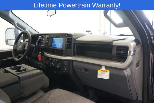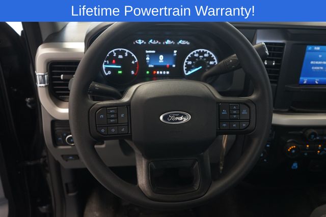 F-350 SuperDuty XL is nicely equipped with Ford Connectivity Package (1-Year Included), GVWR: 10,900 Lb Payload Package, Internet access capable: 5G Modem - Ford Connectivity Package, 190 Amp Alternator, 3.73 Axle Ratio, 4 Speakers, 4-Wheel Disc Brakes, ABS brakes, Air Conditioning, AM/FM radio, Brake assist, Cloth 40/20/40 Split Bench Seat, Compass, Delay-off headlights, Dual front impact airbags, Dual front side impact airbags, Electronic Stability Control, Emergency communication system: SYNC 4 911 Assist, Exterior Parking Camera Rear, Front anti-roll bar, Front Center Armrest w/Storage, Front reading lights, Fully automatic headlights, Heated door mirrors, Illuminated entry, Low tire pressure warning, Outside temperature display, Overhead airbag, Overhead console, Panic alarm, Passenger cancellable airbag, Passenger vanity mirror, Power door mirrors, Power steering, Power windows, Radio: AM/FM Stereo with MP3 Player, Rear step bumper, Remote keyless entry, Security system, Speed control, Steering wheel mounted audio controls, SYNC 4, Tachometer, Telescoping steering wheel, Tilt steering wheel, Traction control, Trip computer, Turn signal indicator mirrors, and Variably intermittent wipers.