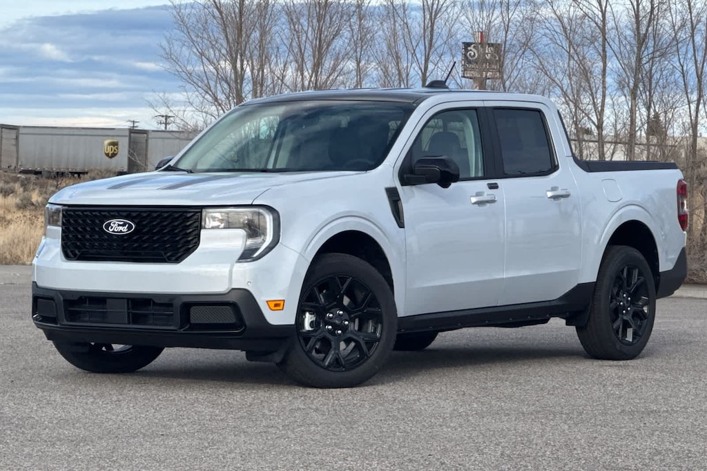 Its a Great Day at Lithia Ford Idaho Falls. 2026 Space White Metallic Ford Maverick Lariat 2.5L I-4 Hybrid. 40/34 City/Highway MPG AWD CVT 2.5L I-4 Hybrid
