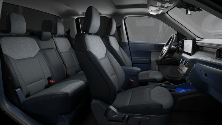 Maverick XLT is nicely equipped with Equipment Group 302A (Radio: AM/FM Stereo with 6 Speakers, SiriusXM with 360L, SYNC 4 with Enhanced Voice Recognition, Unique Cloth Front Bucket Seats, and Wheels: 17" Carbonized Gray Painted Aluminum), Ford Connectivity Package (1-Year Included), Internet access capable: 5G Modem - Ford Connectivity Package, XLT Luxury Package (Heated Mirror with Painted Black Skull Caps, Heated Seats, LED Box Lighting, Pro Power Onboard - 400W, Remote Start System, and Soft Vinyl Wrapped Heated Steering Wheel), 2.91 Axle Ratio, 4-Wheel Disc Brakes, 6 Speakers, ABS brakes, Air Conditioning, Alloy wheels, AM/FM radio: SiriusXM with 360L, Apple CarPlay/Android Auto, Auto High Beams, Auto High-beam Headlights, Automatic temperature control, Brake assist, Bumpers: body-color, Commercial Roadside Assist Kit, Compass, Delay-off headlights, Driver door bin, Driver vanity mirror, Dual front impact airbags, Dual front side impact airbags, Electronic Stability Control, Emergency communication system: SYNC 4 911 Assist, Exterior Parking Camera Rear, Four wheel independent suspension, Front anti-roll bar, Front Bucket Seats, Front Center Armrest, Front reading lights, Fully automatic headlights, Illuminated entry, Intersection Assist, Knee airbag, Lane-Keeping System, Low tire pressure warning, Occupant sensing airbag, Outside temperature display, Overhead airbag, Overhead console, Panic alarm, Passenger door bin, Passenger vanity mirror, Power door mirrors, Power Moonroof, Power steering, Power windows, Pre-Collision Assist with Automatic Emergency Braking, Radio data system, Rear anti-roll bar, Rear seat center armrest, Rear step bumper, Rear-View Camera, Remote keyless entry, Security system, Speed control, Speed-sensing steering, Steering wheel mounted audio controls, Telescoping steering wheel, Tilt steering wheel, Traction control, and Trip computer.