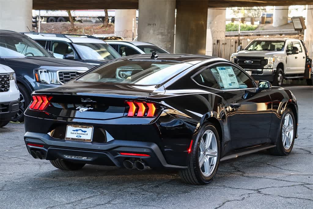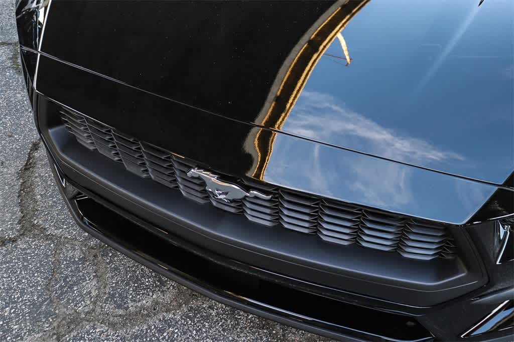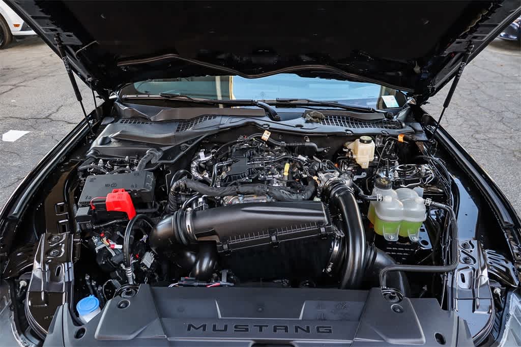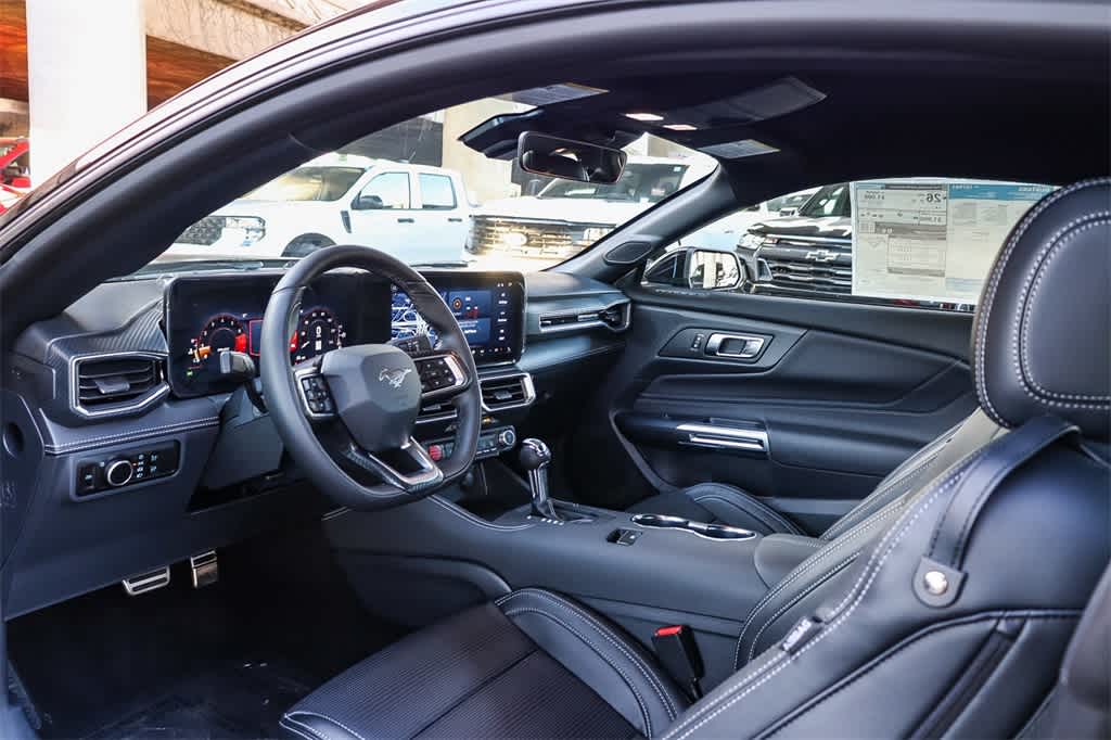 Shadow Black 2026 Ford Mustang EcoBoost Premium RWD 10-Speed Automatic EcoBoost 2.3L I4 GTDi DOHC Turbocharged VCT 1st Row Carpeted Black Floor Mats, 4-Wheel Disc Brakes, ABS brakes, Active Valve Performance Exhaust, Air Conditioning, Alloy wheels, AM/FM Stereo, Auto High-beam Headlights, Automatic temperature control, Brake assist, Bumpers: body-color, Compass, Delay-off headlights, Driver door bin, Driver vanity mirror, Dual front impact airbags, Dual front side impact airbags, Electronic Stability Control, Emergency communication system: 911 Assist, Exterior Parking Camera Rear, Ford Connectivity Package (one-Time Purchase - 7 Years), Four wheel independent suspension, Front anti-roll bar, Front Bucket Seats, Front Center Armrest, Front dual zone A/C, Front reading lights, Fully automatic headlights, Illuminated entry, Knee airbag, Leather Shift Knob, Low tire pressure warning, Occupant sensing airbag, Outside temperature display, Overhead airbag, Overhead console, Panic alarm, Passenger door bin, Passenger vanity mirror, Power door mirrors, Power steering, Power windows, Premium Floor Liners Front and Rear (with Carpet Mats), Radio data system, Rain sensing wipers, Rear anti-roll bar, Rear Parking Sensors, Rear window defroster, Remote keyless entry, Speed control, Speed-sensing steering, Speed-Sensitive Wipers, Split folding rear seat, Sport steering wheel, Steering wheel mounted audio controls, SYNC 4, Tachometer, Telescoping steering wheel, Tilt steering wheel, Traction control, Trip computer, Variably intermittent wipers, Voltmeter, Wheels: 18 x 8 Painted Shadow Silver Cast Aluminum.