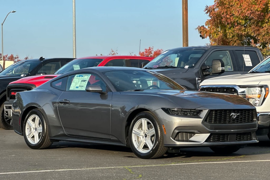 Lithia Ford and Lincoln of Fresno is pleased to offer this Carbonized Gray Metallic 2026 Ford Mustang EcoBoost for purchase, this vehicle is well equipped with many features including: 4-Wheel Disc Brakes, ABS brakes, Air Conditioning, Alloy wheels, AM/FM Stereo, Auto High-beam Headlights, Automatic temperature control, Brake assist, Bumpers: body-color, Compass, Delay-off headlights, Driver door bin, Driver vanity mirror, Dual front impact airbags, Dual front side impact airbags, Electronic Stability Control, Emergency communication system: 911 Assist, Exterior Parking Camera Rear, Four wheel independent suspension, Front anti-roll bar, Front Bucket Seats, Front Center Armrest, Front dual zone A/C, Front reading lights, Fully automatic headlights, Illuminated entry, Knee airbag, Leather Shift Knob, Low tire pressure warning, Occupant sensing airbag, Outside temperature display, Overhead airbag, Overhead console, Panic alarm, Passenger door bin, Passenger vanity mirror, Power door mirrors, Power steering, Power windows, Radio data system, Rain sensing wipers, Rear anti-roll bar, Rear Parking Sensors, Rear window defroster, Remote keyless entry, Speed control, Speed-sensing steering, Speed-Sensitive Wipers, Split folding rear seat, Sport steering wheel, Steering wheel mounted audio controls, SYNC 4, Tachometer, Telescoping steering wheel, Tilt steering wheel, Traction control, Trip computer, Variably intermittent wipers, and Voltmeter. RWD 10-Speed Automatic EcoBoost 2.3L I4 GTDi DOHC Turbocharged VCT EcoBoost