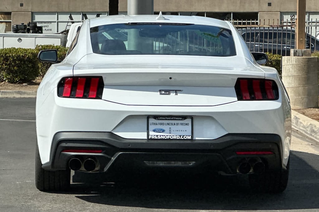 Lithia Ford and Lincoln of Fresno is pleased to offer this Oxford White 2026 Ford Mustang GT Premium for purchase, this vehicle is well equipped with many features including: Equipment Group 400A Standard Package (AM/FM Stereo, SYNC 4, and Wheels: 19 x 8.5 Shadow Silver-Painted Aluminum), 1st Row Carpeted Black Floor Mats, 4-Wheel Disc Brakes, ABS brakes, Active Valve Performance Exhaust, Air Conditioning, Alloy wheels, Auto High-beam Headlights, Automatic temperature control, Brake assist, Bumpers: body-color, Compass, Delay-off headlights, Driver door bin, Driver vanity mirror, Dual front impact airbags, Dual front side impact airbags, Electronic Stability Control, Emergency communication system: 911 Assist, Exterior Parking Camera Rear, Four wheel independent suspension, Front anti-roll bar, Front Bucket Seats, Front Center Armrest, Front dual zone A/C, Front reading lights, Fully automatic headlights, Illuminated entry, Knee airbag, Leather Shift Knob, Leather steering wheel, Low tire pressure warning, Occupant sensing airbag, Outside temperature display, Overhead airbag, Overhead console, Panic alarm, Passenger door bin, Passenger vanity mirror, Power door mirrors, Power steering, Power windows, Radio data system, Rain sensing wipers, Rear anti-roll bar, Rear Parking Sensors, Rear window defroster, Remote keyless entry, Speed control, Speed-sensing steering, Speed-Sensitive Wipers, Split folding rear seat, Sport steering wheel, Steering wheel mounted audio controls, Tachometer, Telescoping steering wheel, Tilt steering wheel, Traction control, Trip computer, Variably intermittent wipers, Voltmeter, and Wheels: 19 x 8.5 Premier Polished Aluminum. RWD 10-Speed Automatic 5.0L V8 Ti-VCT GT Premium