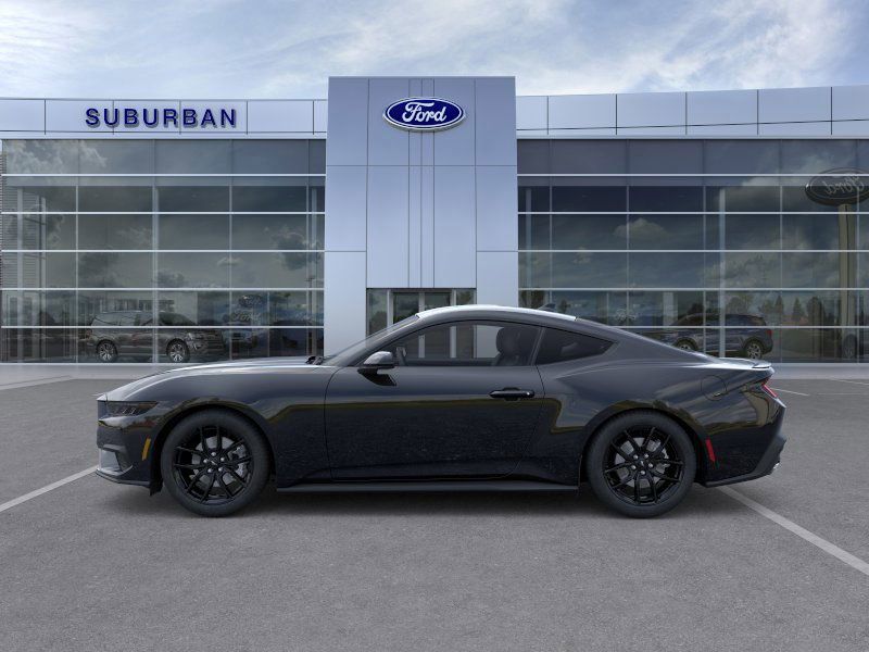 2026 Ford Mustang EcoBoost Is nicely equipped with Mustang Nite Pony Package (Black Front and Rear Pony Badges, Black Mirror Caps, Painted Black Roof, and Wheels: 19" x 8.5" Ebony Black-Painted Aluminum), 1st Row Carpeted Black Floor Mats, 4-Wheel Disc Brakes, ABS brakes, Active Valve Performance Exhaust, Air Conditioning, Alloy wheels, AM/FM Stereo, Auto High-beam Headlights, Automatic temperature control, Black Seat Belts with Red Stripe, Brake assist, Bumpers: body-color, Compass, Delay-off headlights, Driver door bin, Driver vanity mirror, Dual front impact airbags, Dual front side impact airbags, Electronic Stability Control, Emergency communication system: 911 Assist, Exterior Parking Camera Rear, Four wheel independent suspension, Front anti-roll bar, Front Bucket Seats, Front Center Armrest, Front dual zone A/C, Front reading lights, Fully automatic headlights, Illuminated entry, Knee airbag, Leather Shift Knob, Low tire pressure warning, Occupant sensing airbag, Outside temperature display, Overhead airbag, Overhead console, Panic alarm, Passenger door bin, Passenger vanity mirror, Power door mirrors, Power steering, Power windows, Radio data system, Rain sensing wipers, Rear anti-roll bar, Rear Parking Sensors, Rear window defroster, Remote keyless entry, Speed control, Speed-sensing steering, Speed-Sensitive Wipers, Split folding rear seat, Sport steering wheel, Steering wheel mounted audio controls, SYNC 4, Tachometer, Telescoping steering wheel, Tilt steering wheel, Traction control, Trip computer, Variably intermittent wipers, Voltmeter, and Wheels: 18" x 8" Painted Shadow Silver Cast Aluminum. Factory MSRP: $39,890 Dealer Discount of $2,802 off MSRP
