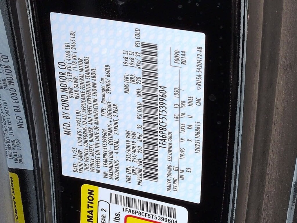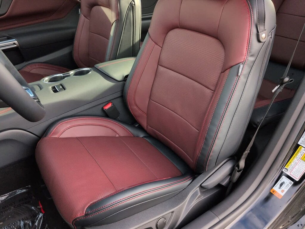 Mustang GT Premium is nicely equipped with Equipment Group 401A High Package (Aluminum Foot Pedals, AM/FM Stereo, Driver Seat Memory with 3 Settings, Leather-Trimmed Bucket Seats with Color Accents, SYNC 4, and Wheels: 19 x 8.5 Shadow Silver-Painted Aluminum), Ford Co-Pilot360 Assist+, 1st Row Carpeted Black Floor Mats, 4-Wheel Disc Brakes, ABS brakes, ActiveX Trimmed Bucket Seats, Air Conditioning, Alloy wheels, Auto High-beam Headlights, Automatic temperature control, Black Painted Wedge Decklid Spoiler, Brake assist, Bumpers: body-color, Climate Controlled Heated/Cooled Front Seats, Compass, Delay-off headlights, Driver door bin, Driver vanity mirror, Dual front impact airbags, Dual front side impact airbags, Electronic Stability Control, Emergency communication system: 911 Assist, Exterior Parking Camera Rear, Four wheel independent suspension, Front anti-roll bar, Front Bucket Seats, Front Center Armrest, Front dual zone A/C, Front reading lights, Fully automatic headlights, Illuminated entry, Knee airbag, Leather Shift Knob, Leather steering wheel, Low tire pressure warning, Occupant sensing airbag, Outside temperature display, Overhead airbag, Overhead console, Panic alarm, Passenger door bin, Passenger vanity mirror, Power door mirrors, Power steering, Power windows, Radio data system, Rain sensing wipers, Rear anti-roll bar, Rear Parking Sensors, Rear window defroster, Remote keyless entry, Speed control, Speed-sensing steering, Speed-Sensitive Wipers, Split folding rear seat, Sport steering wheel, Steering wheel mounted audio controls, Tachometer, Telescoping steering wheel, Tilt steering wheel, Traction control, Trip computer, Variably intermittent wipers, Voltmeter, and Wedge Decklid Spoiler.